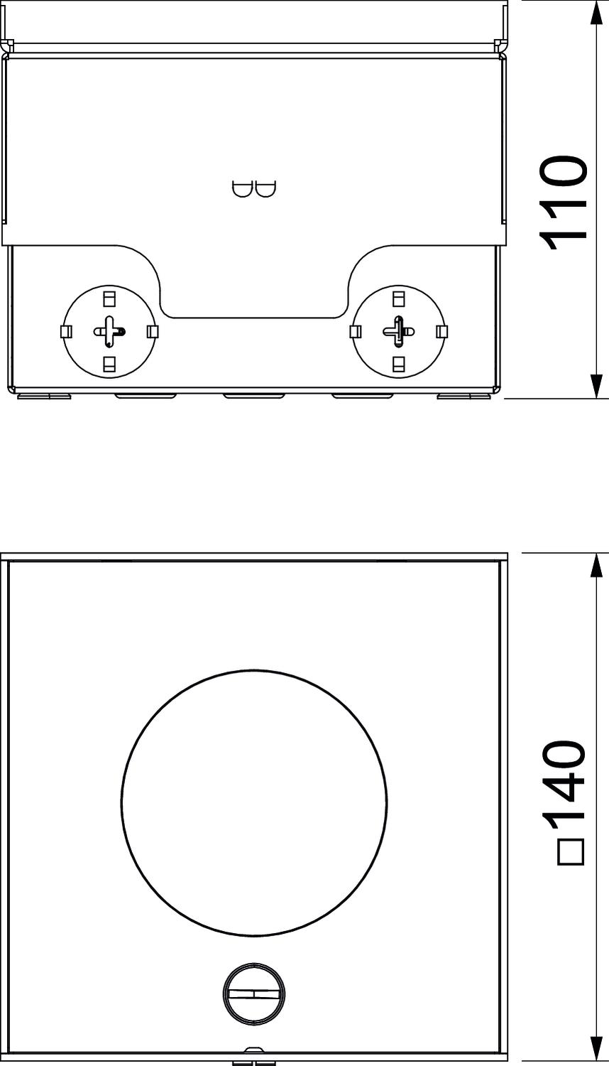 Produkta aprakstsKvadrātveida grīdas lūka izmantošanai dobajās grīdās un betona grīdās ar mitro kopšanu iekštelpās. Vada izeja, izmantojot augstumā regulējamu cauruli. Iebūvējams korpuss ar sagatavotām ieejas atverēm cauruļu (M20/M25) montāžai. Augšējā daļa ar 4 augstuma regulēšanas balstiem ir noregulējama atbilstoši grīdas seguma augšmalai. Minimālais iebūvēšanas dziļums ir 110 mm, augstuma regulēšanas diapazons + 25 mm. Slodzes izturība 15 kN lietotā stāvoklī nav garantēta.