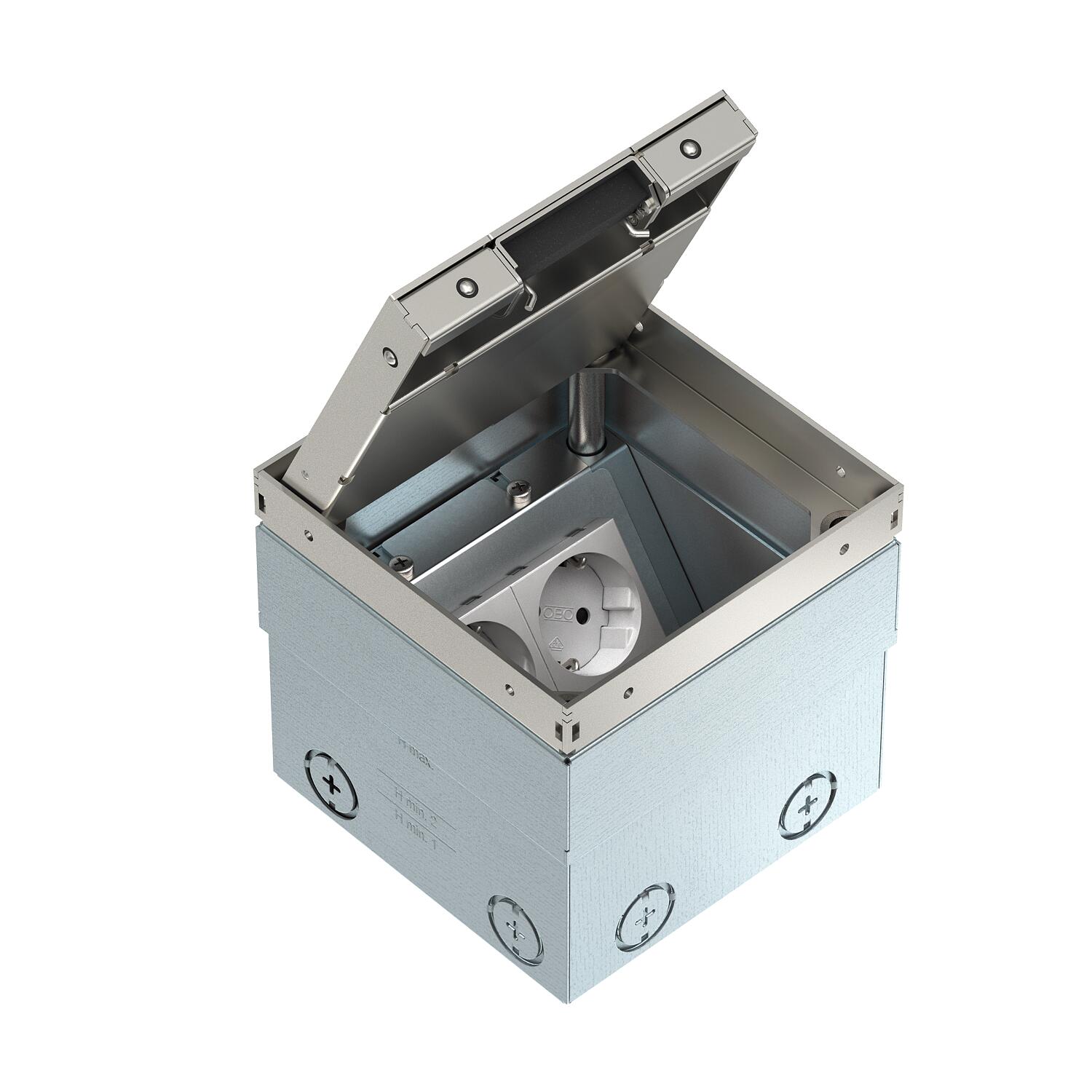 Grīdas segumā redzams ietvars un vāks no nerūsošā tērauda. Ar 2 Modul 45® kontaktligzdām montāžas kārbā un vienu izvēles datu tehnikas turētāju līdz pat 2 datu pieslēguma moduļiem. Slodzes izturība 15 kN lietotā stāvoklī nav garantēta.