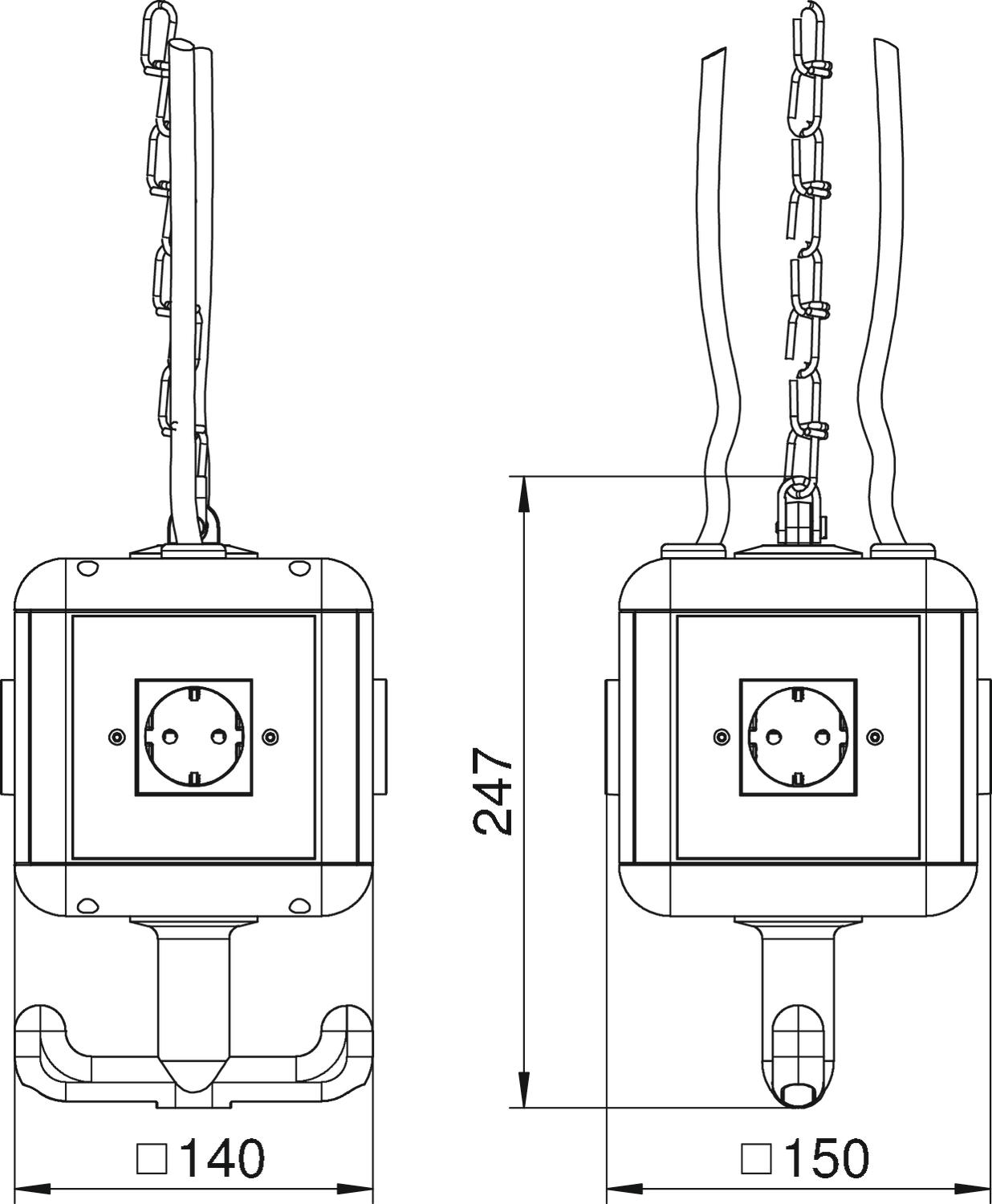 Produkta aprakstsKorpuss, ar aprīkojumu un rūpnīcā sagatavotu vadojumu, ar iekares cilpu, roktura āķi un 4 nosegplāksnēm.