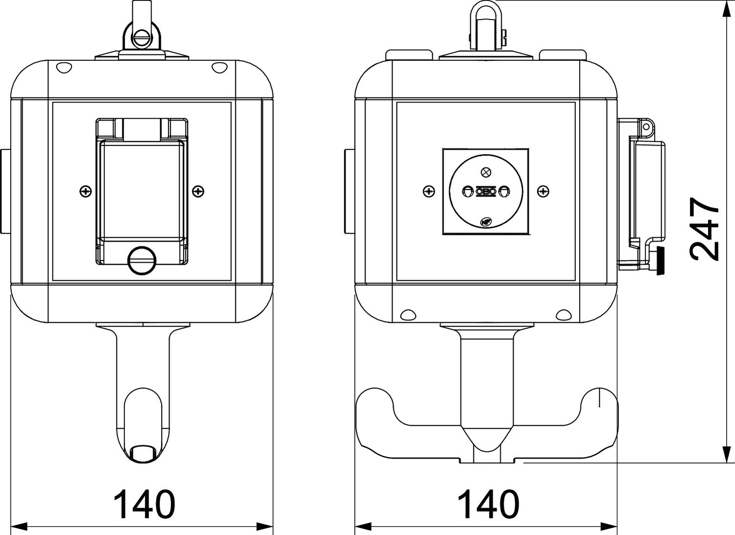 2 x vienvietīgas iezemētas kontaktligzdas, 16 A/250 V ar paaugstinātas drošības pieskāršanās aizsardzību, ar rūpnīcā sagatavotu vadojumu vienai maiņstrāvas ķēdei, pieslēgums ar 1 x spaili, 3 polu, ar starpsienu strāvas ķēžu nodalīšanai un FI/FL slēdzi.