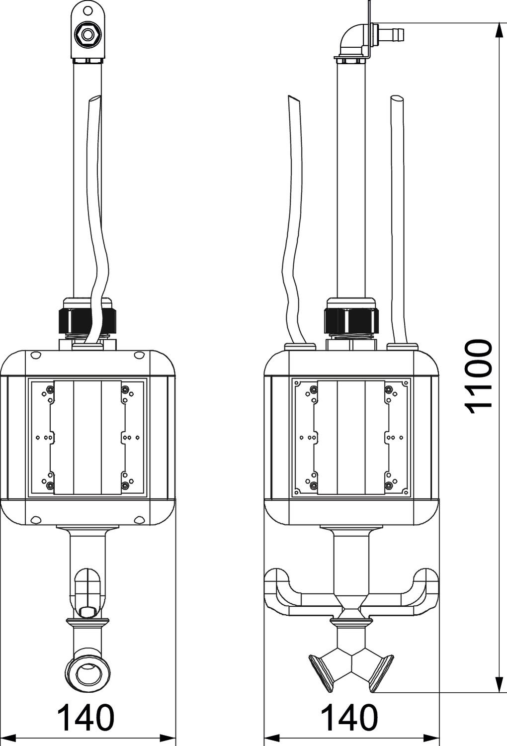 Produkta aprakstsTukšs korpuss ar 1 m cauruli 1/2” un pieslēgumu saspiesta gaisa šļūtenei ar izmēru 13 x 3,5 mm, un divvirzienu sadalītāju 1/2”. Ar uzkaramu cilpu un roktura āķi, 4 elektrisko ražošanas līdzekļu iebūvēšanai, ar pievienotu sadalošo sienu. Bez aizsargplāksnēm.