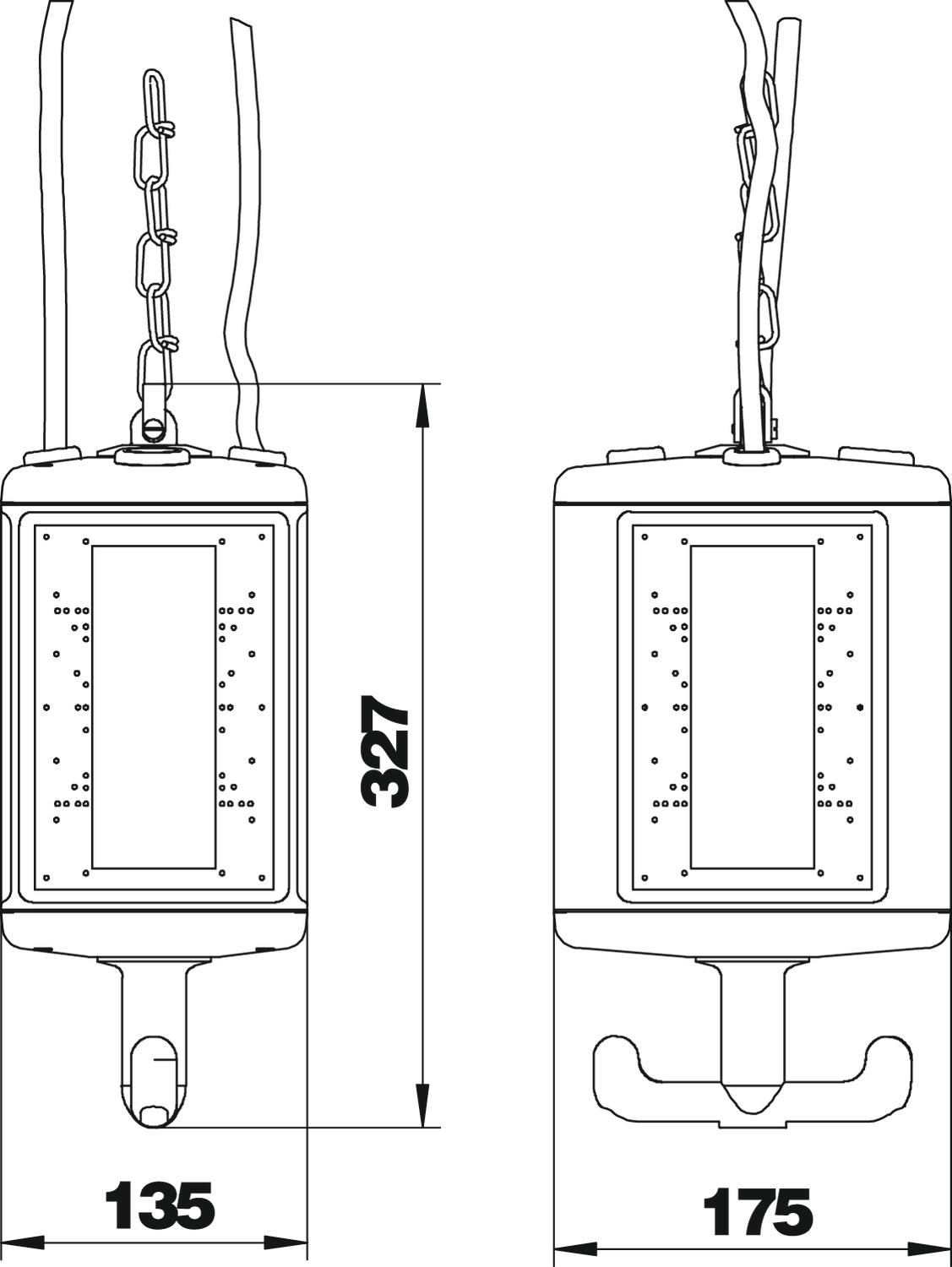 Produkta aprakstsTukšs korpuss ar uzkaramu cilpu un roktura āķi, elektrisku ražošanas līdzekļu iebūvēšanai, ar pievienotu starpsienu. Bez aizsargplāksnēm. Darba vietu aprīkošanai mitrās vietās. Aizsardzības pakāpe: IP 44.