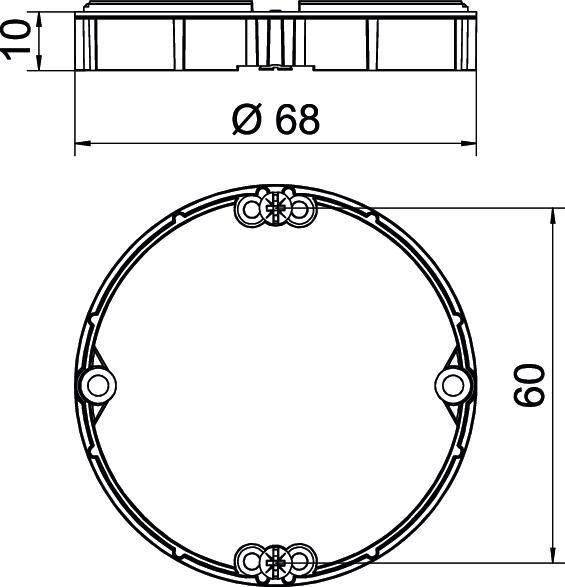 Ar skrūvēm jā Augstums 10 mm CO2 pēdas nospiedums (GWP) no šūpuļa līdz vārtiem 0,0145 kg CO2e / 1 Gabals Diametrs 68 mm Ierīces skrūvju attālums 60 mm Izmērs Ø68mm, H10mm Krāsa oranžs Materiāls Polipropilēns Nesatur halogēnus jā Triecienizturīgs nē ugunsizturīgs atb. VDE 0471/IEC 60695-2-11, pārbaudes temperatūra 850°C - Visi tipi