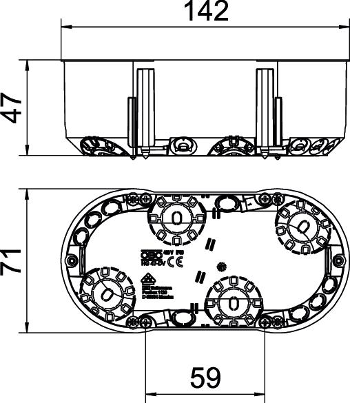 Produkta aprakstsDubulta ierīču kārba dobai sienai izmantošanai dobās sienās ar iebūves dziļumu vismaz 47 mm un plākšņu biezumu 5 - 40 mm.