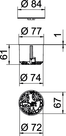 Aizsardzības veids IP30 Ar skrūvēm jā Atveres veids NYM-vadi un caurule Augstums 61 mm Balsti bez caurules diametram 20/25 mm CO2 pēdas nospiedums (GWP) no šūpuļa līdz vārtiem 0,1237 kg CO2e / 1 Gabals Diametrs 74 mm Forma apaļš Frēzējamā cauruma diametrs 74 mm Hermētisks nē Ieliktņu skaits 1 Ierīču stiprinājums Skrūves Ievadu skaits 9 Izmērs Ø74mm, H61mm Kabeļu ievadi 3 x 1,5 mm² 1 Kabeļu ievadi 3 x 2,5 mm² / 5 x 1,5 mm² 3 Kabeļu ievadi 5 x 2,5 mm² / 7 x 1,5 mm² 2 Kombinētie ievadi Ø 20 / 25 mm 3 Korpusa caurvada veids Izlaušanas atvere Krāsa oranžs Materiāls Polipropilēns Nesatur halogēnus jā Nominālais diametrs maks. 2,5 mm² Nominālais diametrs min. 1,5 mm² Nominālais spriegums 400 V Piemērots plāksnēm ar biezumu maks. 40 mm Piemērots plāksnēm ar biezumu min. 5 mm Triecienizturīgs nē ugunsizturīgs atb. VDE 0471/DIN 695, daļa 2-1, pārbaudes temperatūra 850°C Vāka nostiprināšana Skrūves Vāka skrūvju attālums 67 mm Vāks balts - Visi tipi