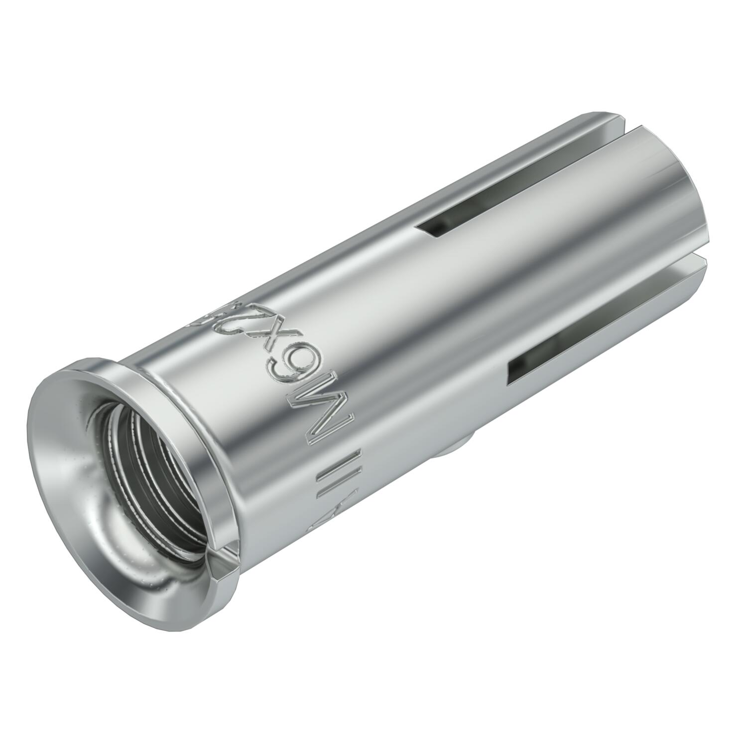 Produkta aprakstsIedzenams enkurs daudzkārtējam stiprinājumam, tērauda modelis ar iekšēju vītni, piemēram, kabeļu nesošo sistēmu, konsoļu, tērauda konstrukciju enkurošanai nesaplaisājušā betonā telpās un ārpus tām. Iedzīšanai ar āmuru. Ar paceltu malu, lai nepieļautu ievilkšanu urbumā. Nerūsējošs, ļoti izturīgs pret koroziju. Enkurčaula piespiežas pie urbuma sienas, kad tiek iedzīta iekšējā tapa, piemēram, ar manuālas iedzīšanas instrumentu EHS M. Pārbaudīts no ugunsdrošības viedokļa, ugunsizturības klase R 120 saskaņā ar Eiropas tehnisko atļauju ETA-07/0135 betonam.