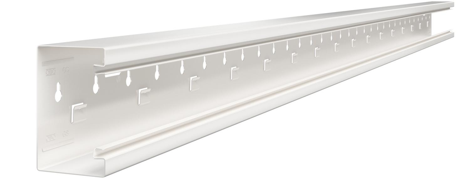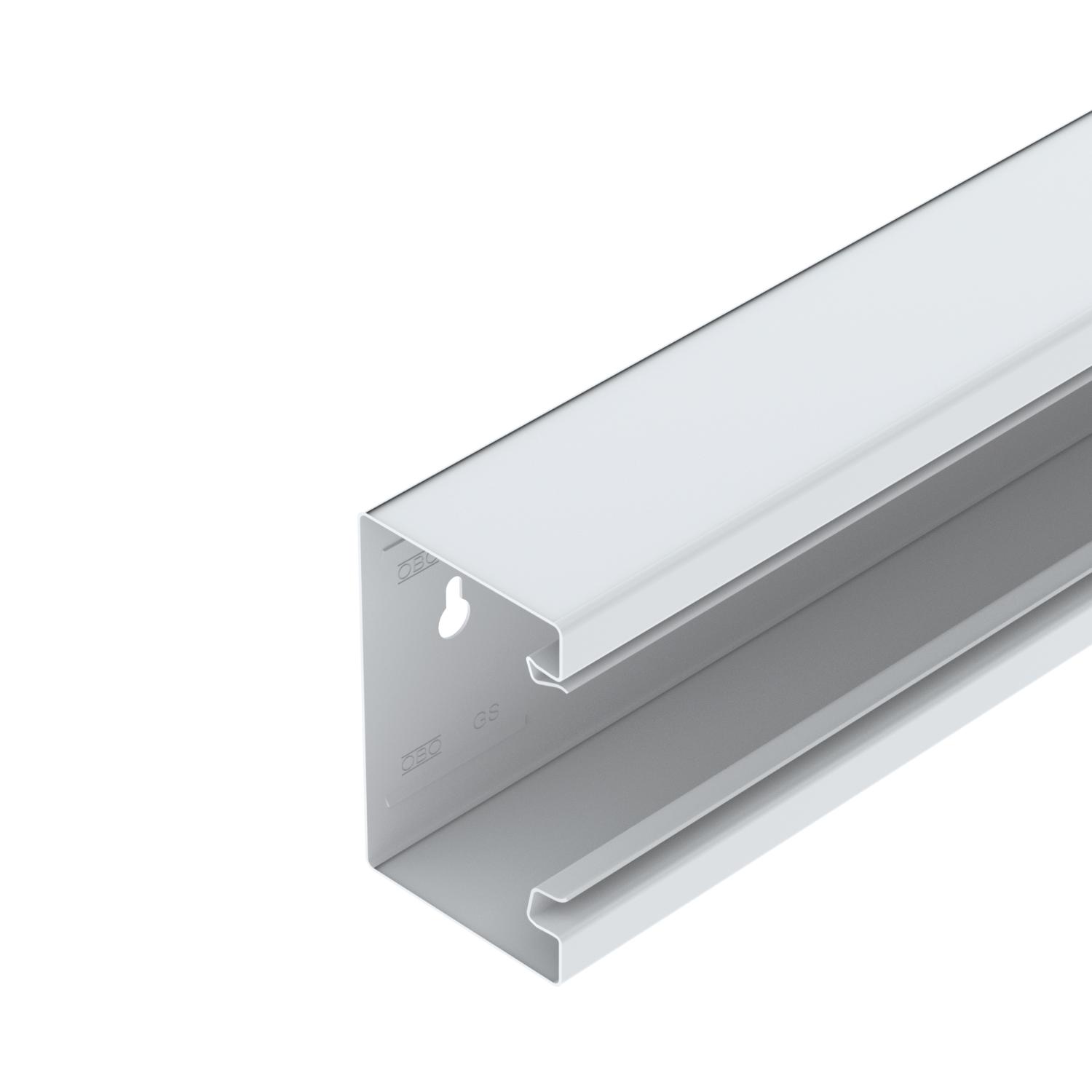 Produkta aprakstsGS ierīču montāžas kanāls, paredzēts montāžai tieši pie sienas vai stiprinājuma konsolēm. GS ierīču montāžas kanāls aprīkots ar savienojumu automātiski izveidojošiem stiprinājuma uzliktņiem, kas ļauj iestiprināt no tērauda loksnes izgatavotu starpsienu. Potenciālu izlīdzināšana starp kanāla apakšējām daļām notiek ar savienojuma starpniecību. Aizsardzības funkciju un potenciālu izlīdzināšanu starp augšējo un apakšējo daļu nodrošina patentēts, automātiski savienojumu izveidojošs kanāla vāks. Sistēmas atveres patiesais izmērs ir 76,5 mm. Augšējā daļa jāpasūta atsevišķi.