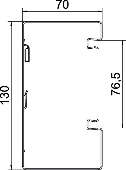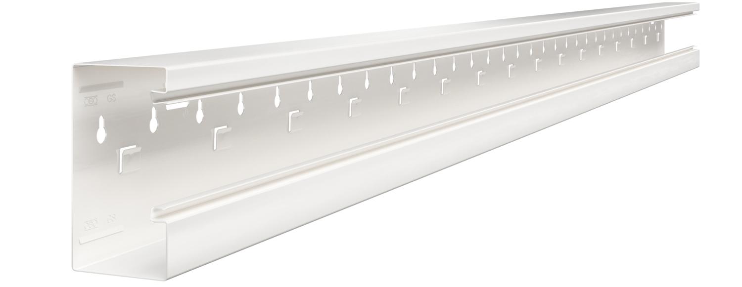 Produkta aprakstsGS ierīču montāžas kanāls, paredzēts montāžai tieši pie sienas vai stiprinājuma konsolēm. GS ierīču montāžas kanāls aprīkots ar savienojumu automātiski izveidojošiem stiprinājuma uzliktņiem, kas ļauj iestiprināt no tērauda loksnes izgatavotu starpsienu. Potenciālu izlīdzināšana starp kanāla apakšējām daļām notiek ar savienojuma starpniecību. Aizsardzības funkciju un potenciālu izlīdzināšanu starp augšējo un apakšējo daļu nodrošina patentēts, automātiski savienojumu izveidojošs kanāla vāks. Sistēmas atveres patiesais izmērs ir 76,5 mm. Augšējā daļa jāpasūta atsevišķi.