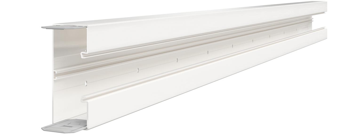 Produkta aprakstsGK ierīču montāžas kanāls no svinu nesaturoša polivinilhlorīda, piemērots montāžai tieši pie sienas vai sienas konsolēm. Stiprinājumu izveido ar kanāla malu perforācijas palīdzību. GK ierīču montāžas kanāls aprīkots ar C veida profilu pie pamatnes, kas paredzēts plastmasas starpsienas ievietošanai. Sērijas 71GD... ierīču montāžas kārbās var iebūvēt visu slēdžu programmu produktus, veicot montāžu ar balstgredzenu vai apskavu, kā arī Modul 45 instalācijas ierīces. Sistēmas atvere ir 76,5 mm. Katrs kanāla gareniskais posms ir aprīkots ar savienojuma pāri. Augšējā daļa jāpasūta atsevišķi.