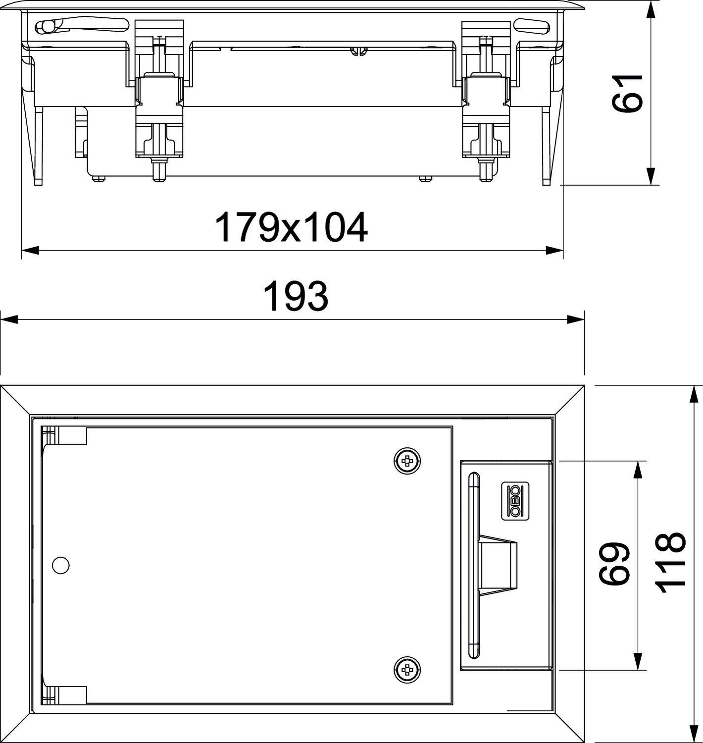 Ierīču montāžas kārba ar roktura skavu, 1 sekcija, montāžas balsta MT2 iebūvēšanai.