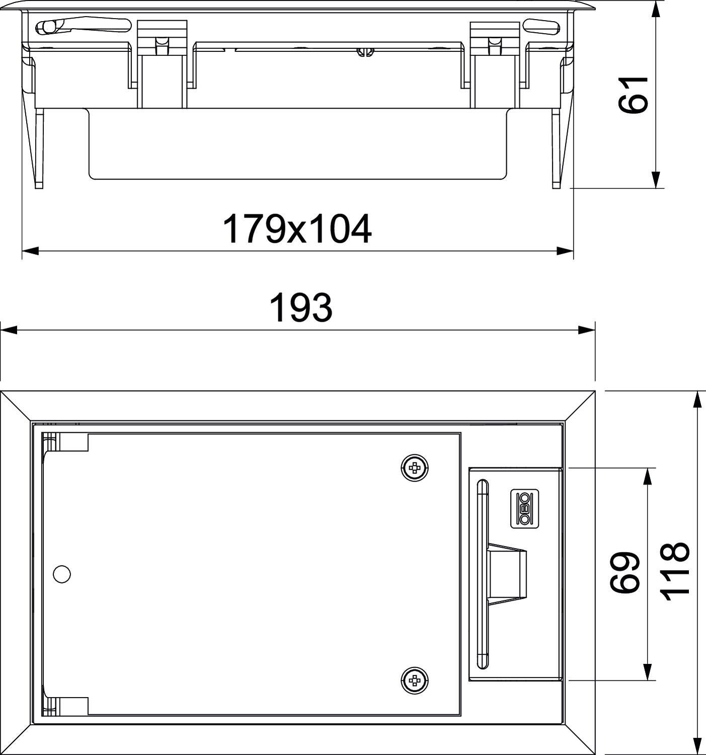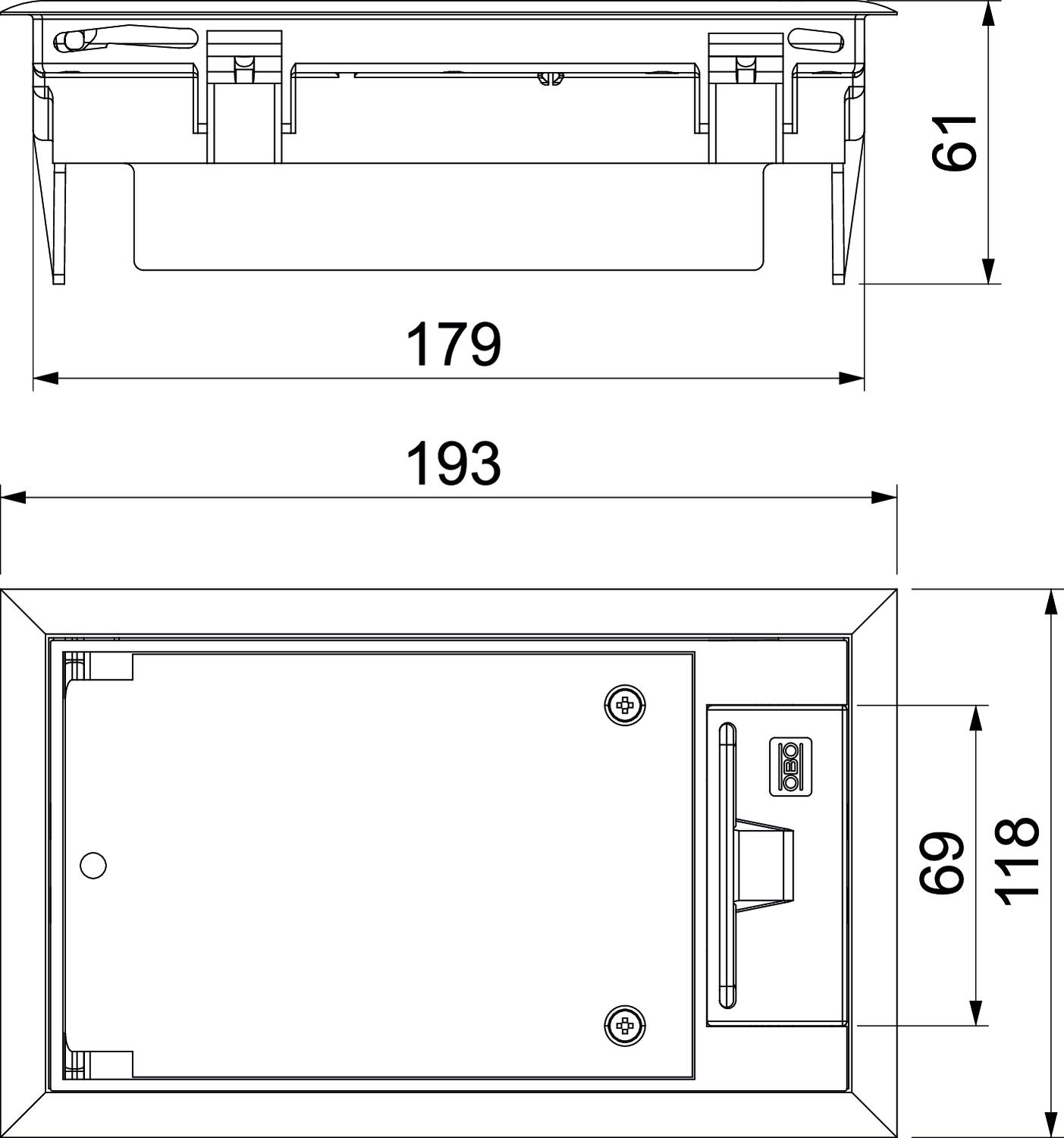 Ierīču montāžas kārba ar roktura skavu, 1 sekcija, montāžas balsta MT2 iebūvēšanai.