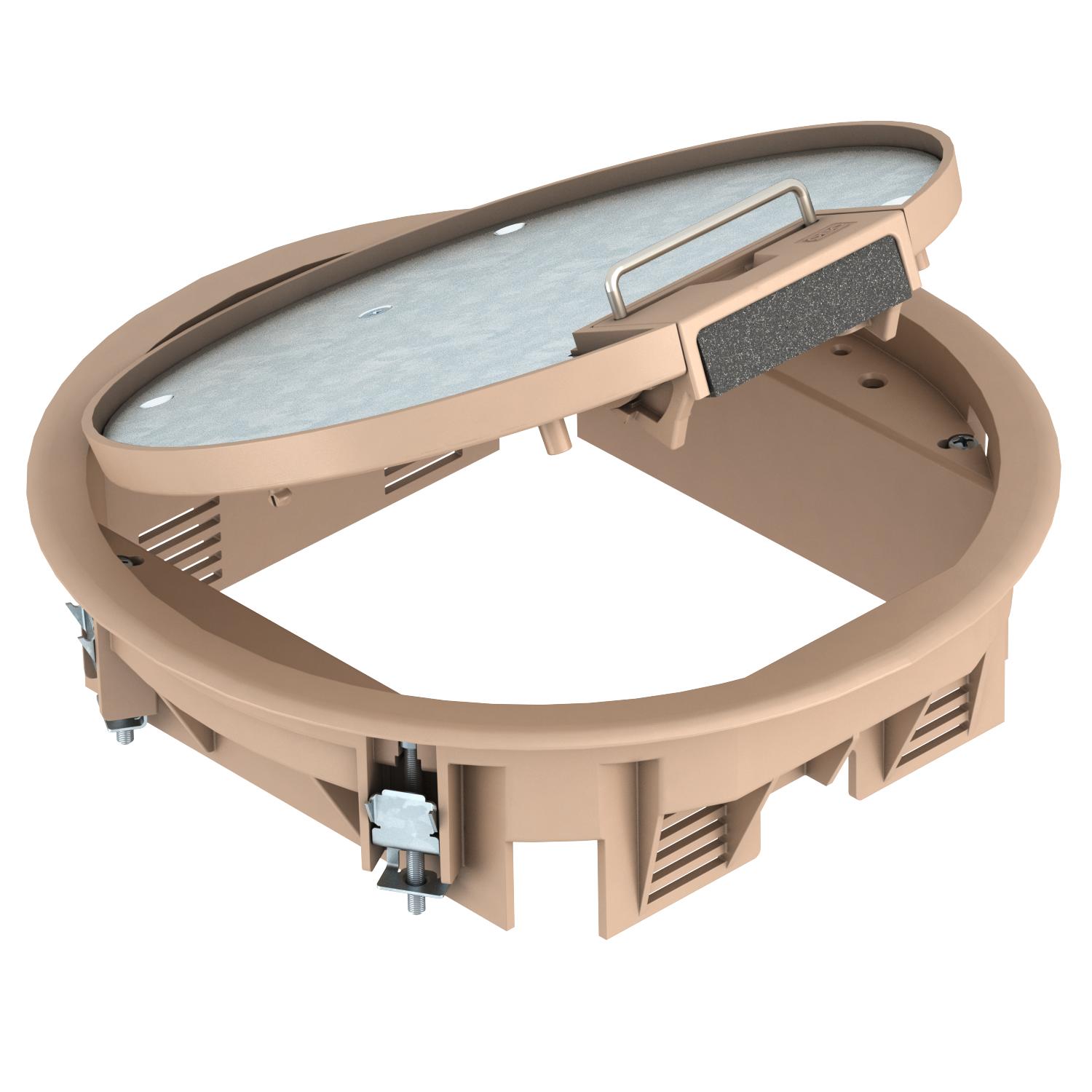 Aizsardzības pakāpes IK kods IK08 Aizsardzības veids (IP) izmantošanas stāvoklī IP20 Aizsardzības veids (IP) neizmantotā stāvoklī IP40 Ar izgriezumu grīdas segumam jā Ārējais diametrs 234 mm Atļaujas VDE Atvēršanas mehānisms Roktura skava CO2 pēdas nospiedums (GWP) no šūpuļa līdz vārtiem 1,7699 kg CO2e / 1 Gabals Grīdas augstums min. 73 mm Grīdas kopšana sauss Grīdas seguma aizsardzības rāmis jā Grīdas seguma biezums 5 mm Iebūvējamo ierīču skaits 6 Iebūvēšanas diametrs 215 Iebūvēšanas dziļums 73 mm Iekārtas stiprinājums ierīču kārbu nostiprināšanai jā Ierīču kārbu skaits 2 Iespējams iemontēt blīvi nē Izmērs Ø234x61 Izpildījums apaļš Kabeļu izvada izpildījums Pagriežams kabeļa izvads Krāsa pelēki bēša; RAL 1019 Lielas slodzes versija nē Materiāls Poliamīds Montāžas sistēmas tips UT3 Nominālais lielums ierīču iebūvēšanas vienībai R4 Piemērots aizvērtam zemgrīdas kanālam vienā līmenī ar grīdas segumu jā Piemērots dubulto grīdu montāžai jā Piemērots iebūvēšanai dobās grīdās jā Piemērots mitrajai kopšanai nē Piemērots zemgrīdas kanālam jā Piemērots zemgrīdas kanālam, ko pārklāj grīdas segums jā Rāmja modelis Paklāja aizsargrāmis Spriegošanas diapazons D maks. 31 mm Spriegošanas diapazons D min. 7 mm Vertikālā slodze, liels laukums līdz 5 000 N Vertikālā slodze, mazs laukums līdz 3 000 N - Visi tipi