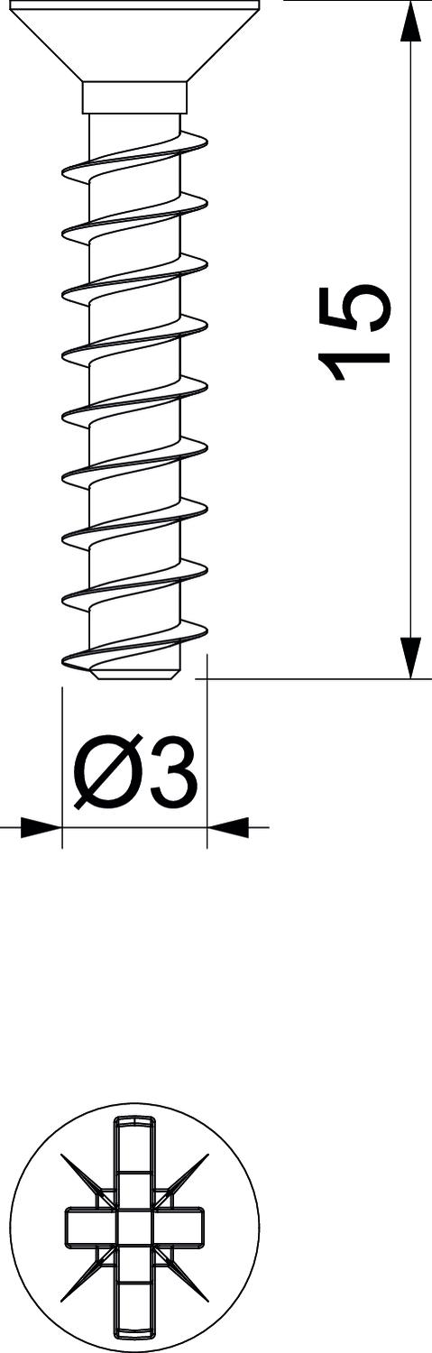 Garums 15 mm Izmērs Ø3,2mm,15mm Materiāls Tērauds Virsma galvaniski cinkota Vītnes diametrs ST 3,2 - Visi tipi