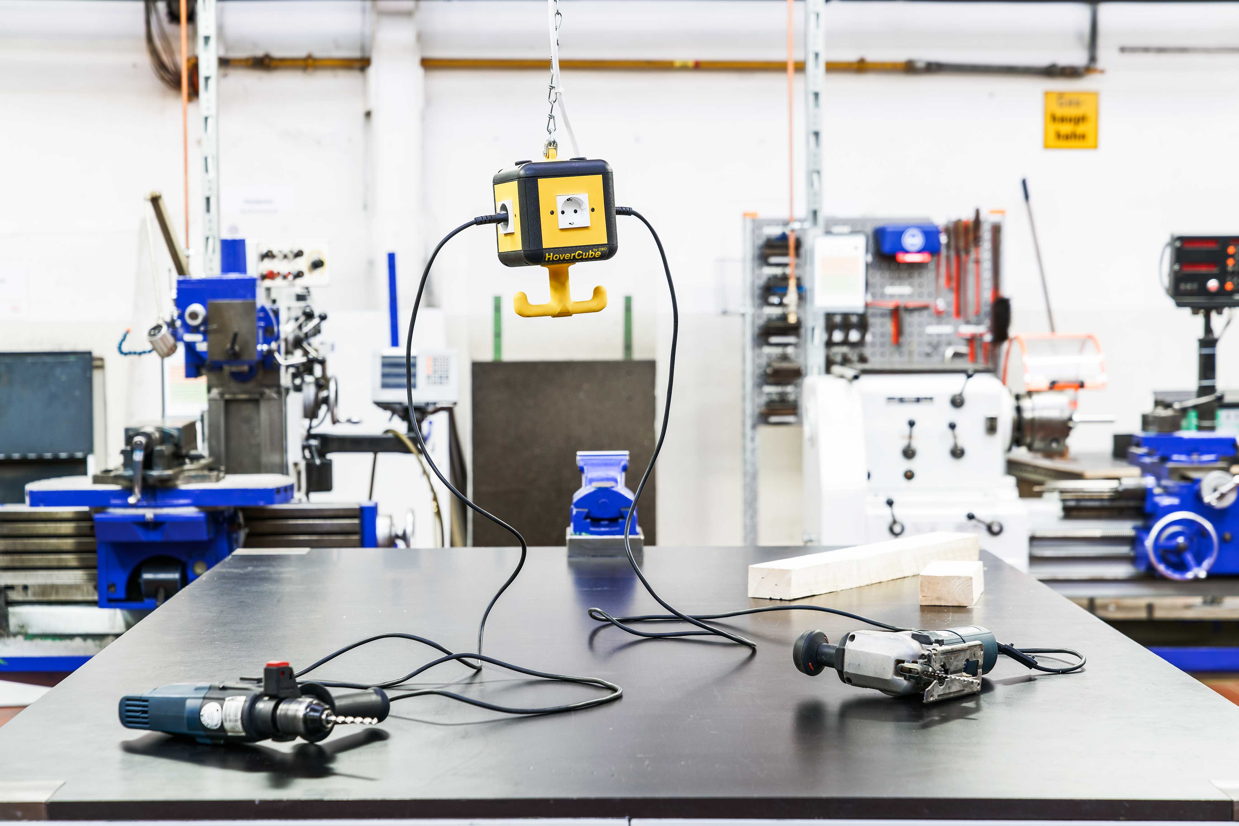 OBO Bettermann var palīdzēt: lietojot nelielos VH un VHF tipu barošanas blokus, traucējošie pagarināšanas kabeļi un šļūtenes pieder pagātnei. Kompaktos pakarinātos sadalītājus var atvienot no griestiem un brīvi izvietot telpā. Šādi tie atbalsta drošu un racionālu darbu katrā darba vietā.