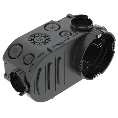 Hermētiska zemapmetuma kārba pārliecina ar speciālu membrānu ievadi no termoplastiskā elastomēra (TPE). Vienkārši caurdurt ar vadiem un caurulēm un tas padara papildu instrumentus nevajadzīgus. - 4 x 3 skrūvju vietas