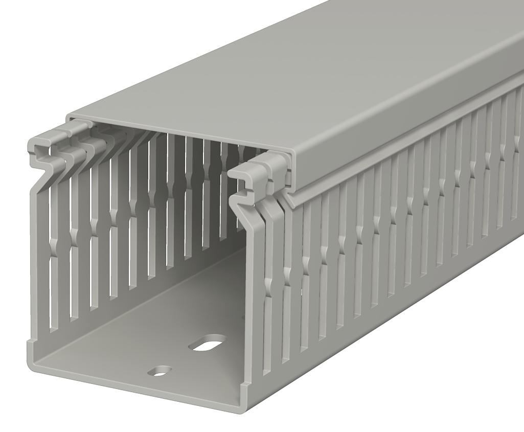 Produkta aprakstsInstalācijas vadu kanāls ar augšdaļu un pamatnes perforāciju horizontālai un vertikālai elektrības kabeļu un vadu izvietošanai komutācijas skapī. Izpildījums kā metrisks kanāls. Sistēmas lielumu nominālais izmērs atbilst kanālu iekšējam izmēram. Fiksatorus var izlauzt bez instrumentiem. Iespējams pie grīdas stiprināms izpildījuma variants ar atzīmētiem izlaušanas punktiem. Sašaurinājumi sānu spraugās novērš vadu izkrišanu. Pārbaudīta atbilstoši DIN EN 50085-2-3. Speciālie garumi pēc pieprasījuma.