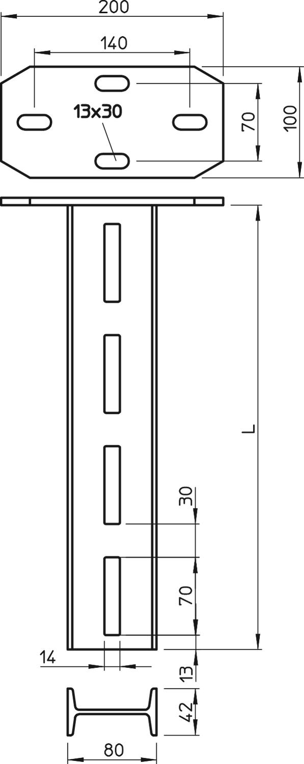 Produkta aprakstsIekārtais statnis (I profils) ar piemetinātu augšējo plāksni. Nostiprināšanai pie horizontāliem betona griestiem un tērauda sijām.