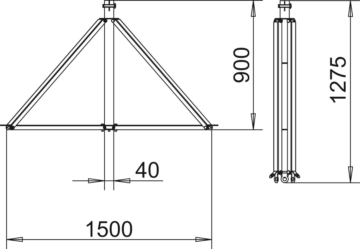 Augstums 1275 mm CO2 pēdas nospiedums (GWP) no šūpuļa līdz vārtiem 27,3315 kg CO2e / 1 Gabals Diametrs 1500 mm Garums 900 mm Izmērs 1,65x1,85m Izmērs B 1500 mm Izmērs D, min. 40 mm Izmērs H 1275 mm Izmērs L 900 mm Izpildījums Statīvs Materiāls Alumīnijs Platums 1500 mm Zibens uztveršanas stieņa ievietošana bez skrūvēm - Visi tipi