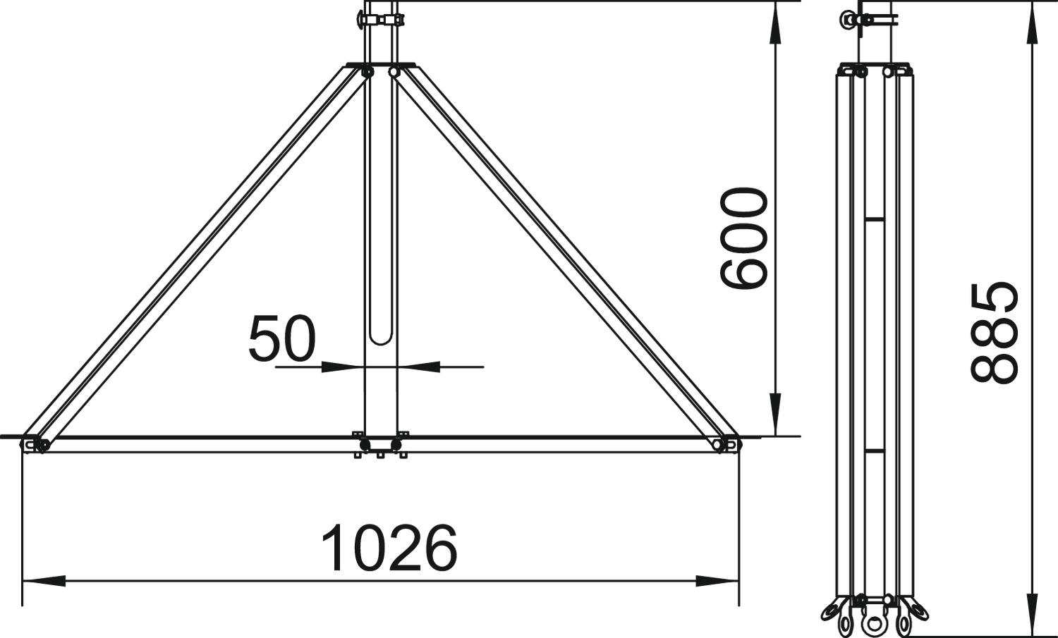 Augstums 885 mm CO2 pēdas nospiedums (GWP) no šūpuļa līdz vārtiem 4,1733 kg CO2e / 1 Gabals Diametrs 1026 mm Garums 600 mm Izmērs 1,3x1,4m Izmērs B 1026 mm Izmērs D, min. 50 mm Izmērs H 885 mm Izmērs L 600 mm Izpildījums Statīvs Materiāls Nerūsējošais tērauds 1.4301 Platums 1026 mm Zibens uztveršanas stieņa ievietošana bez skrūvēm - Visi tipi