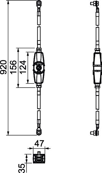 • Abos galos pieslēguma vads (25 mm2 ) ar M10 skrūvi, atsperpaplāksne un uzgrieznis jau piemontēts