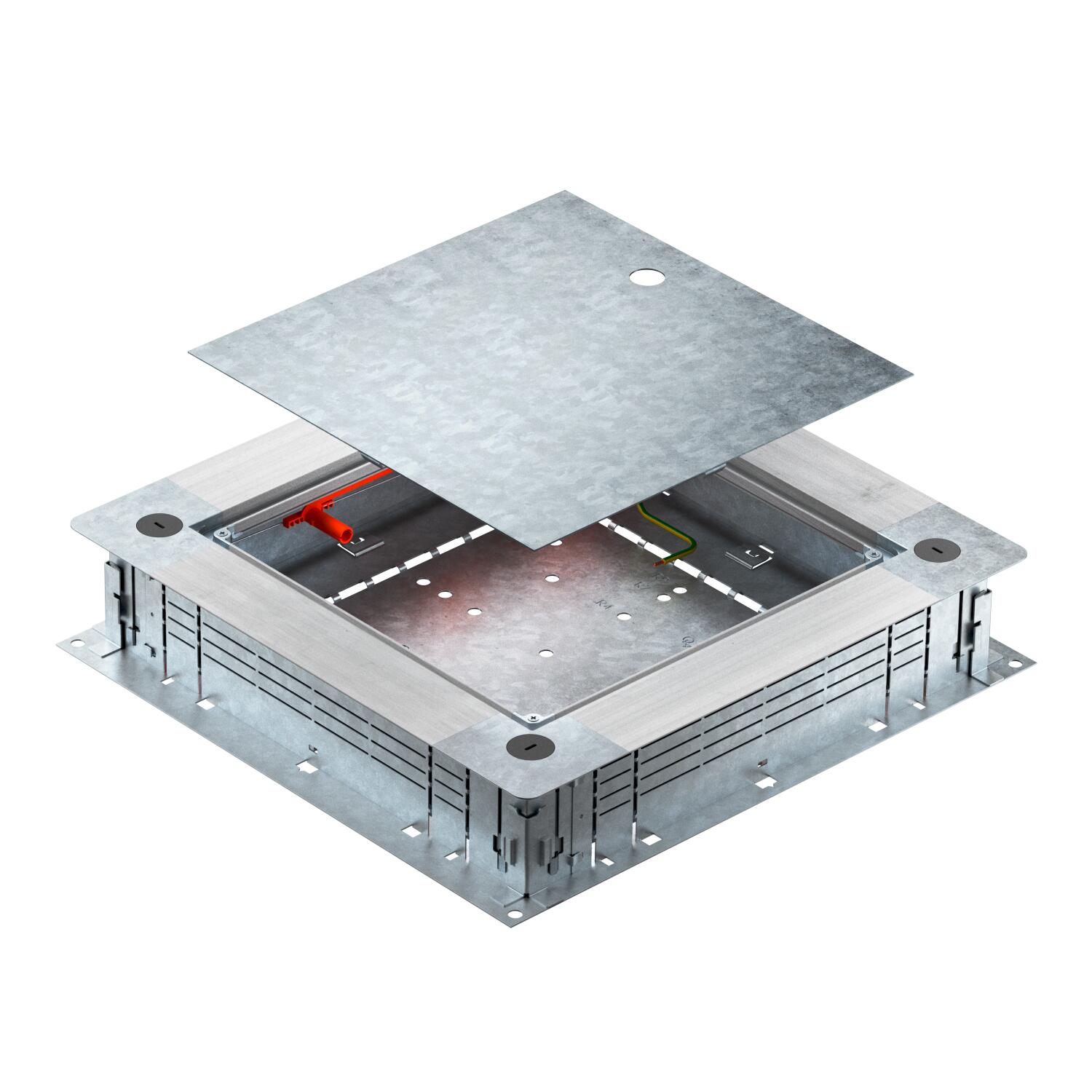 Produkta aprakstsIzvadu kārba un nozarkārba zemgrīdas instalāciju kanāliem ar sānu sienām no tērauda loksnes. Iebūvējamo vienību montāžai montāžas vākā (pasūtāms atsevišķi). Var bez pakāpēm noregulēt uz betona grīdas augstumu 80- 160 mm (iespējama ātrā augstuma noregulēšana). Cementbetona grīdu var iestrādāt vienā līmenī ar cementbetona novilkšanas malu. Ar akustiski tehniskas atvienošanas iespēju pēc izvietošanas cementbetona grīdā un ar sistēmas piederumiem izmantojams arī paaugstinātas slodzes gadījumos. Kabeļu un vadu ievietošana ar divdaļīgiem EÜK kanāliem.