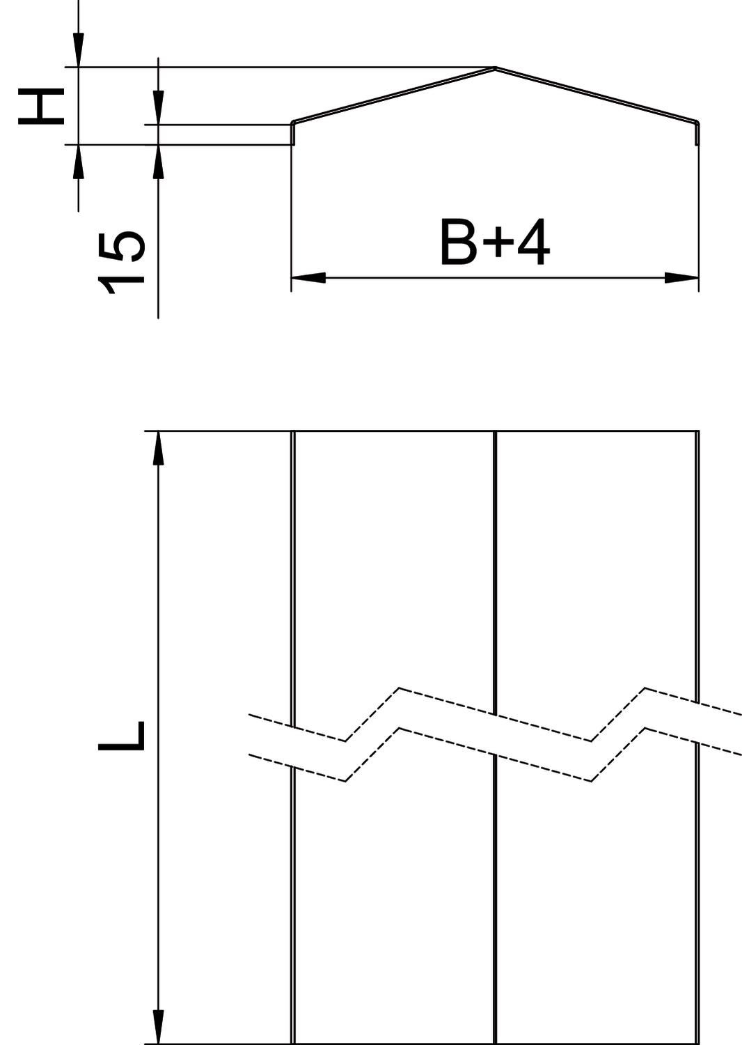 Produkta aprakstsJumta formas vāks uzstādīšanai uz kabeļu renēm, kabeļu trepēm un gara laiduma sistēmām. Nostiprināšanai tiek izmantotas pašgriezošas urbšanas skrūves.