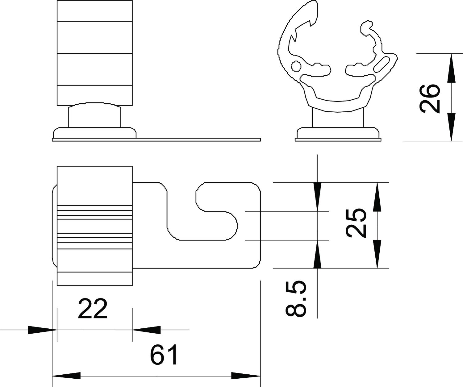• Apakšējā daļa ar garenisku atveri Ø 8,5 mm