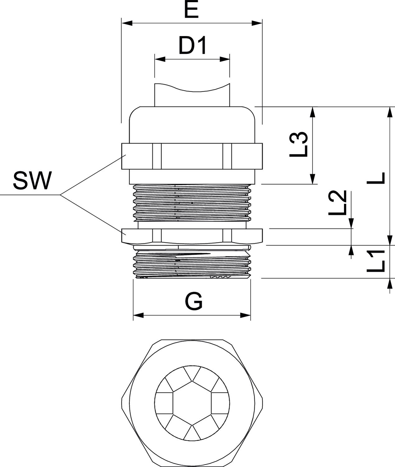 Aizsardzība pret lieci nē Aizsardzības veids IP68 Ar pretuzgriezni nē Atslēgas platums 27 Augstums 36,5 mm Blīvējuma veids Blīvgredzens Blīvējuma virsma D maks. 16 mm Blīvējuma virsma D min. 11 mm CO2 pēdas nospiedums (GWP) no šūpuļa līdz vārtiem 0,1484 kg CO2e / 1 Gabals Daudzvietīgs blīvēšanas ieliktnis nē Garums 27 mm Iespēja atbrīvot no sprieguma jā Izmantošanas temperatūras diapazons maks. 100 °C Izmantošanas temperatūras diapazons min. -20 °C Izmērs M25 Izmērs D1 11 mm Izmērs e 30 mm Izmērs G M25x1,5 mm Izmērs L 29,5 mm Izmērs L1 7 mm Izmērs L2 3,5 mm Izmērs L3 13,3 mm Izpildījums taisns Materiāls misiņa Nesatur halogēnus nē Plakanvada skrūvsavienojums nē Platums 30 mm sprādzienbīstamai zonai bez Stiegrots ar stikla šķiedru nē Triecienizturīgs nē Virsma Niķelēts Vītne M25 x 1,5 Vītnes garums 7 mm - Visi tipi