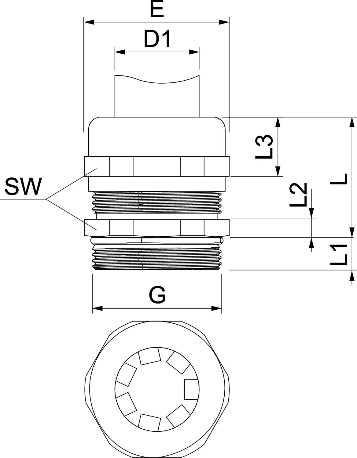 Aizsardzība pret lieci nē Aizsardzības veids IP68 Ar pretuzgriezni nē Atslēgas platums 34 Augstums 38 mm Blīvējuma veids Blīvgredzens Blīvējuma virsma D maks. 21 mm Blīvējuma virsma D min. 14 mm CO2 pēdas nospiedums (GWP) no šūpuļa līdz vārtiem 0,251 kg CO2e / 1 Gabals Daudzvietīgs blīvēšanas ieliktnis nē Garums 34 mm Iespēja atbrīvot no sprieguma jā Izmantošanas temperatūras diapazons maks. 100 °C Izmantošanas temperatūras diapazons min. -20 °C Izmērs M32 Izmērs D1 14 mm Izmērs e 36 mm Izmērs G M32x1,5 mm Izmērs L 30 mm Izmērs L1 8 mm Izmērs L2 4,5 mm Izmērs L3 16,5 mm Izpildījums taisns Materiāls misiņa Nesatur halogēnus nē Plakanvada skrūvsavienojums nē Platums 38 mm sprādzienbīstamai zonai bez Stiegrots ar stikla šķiedru nē Triecienizturīgs nē Virsma Niķelēts Vītne M32 x 1,5 Vītnes garums 8 mm - Visi tipi