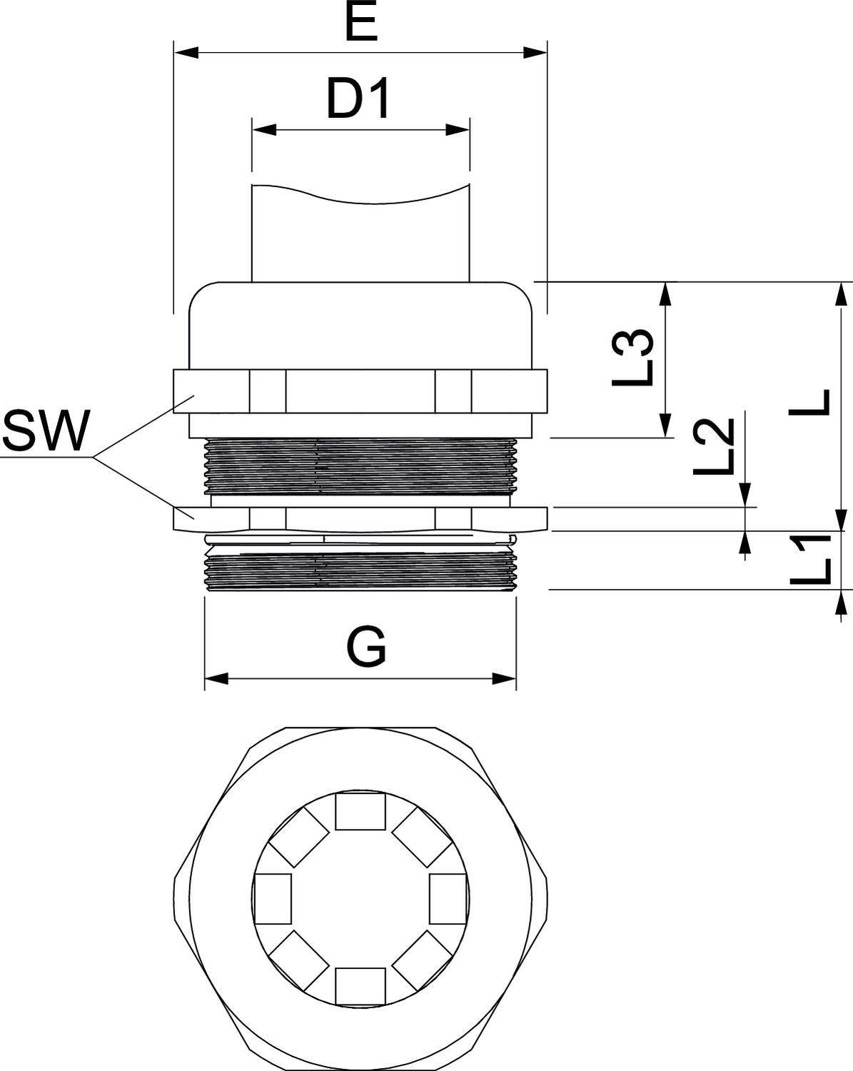 Aizsardzība pret lieci nē Aizsardzības veids IP68 Ar pretuzgriezni nē Atslēgas platums 55 Augstums 49,5 mm Blīvējuma veids Blīvgredzens Blīvējuma virsma D maks. 35 mm Blīvējuma virsma D min. 24 mm CO2 pēdas nospiedums (GWP) no šūpuļa līdz vārtiem 0,408 kg CO2e / 1 Gabals Daudzvietīgs blīvēšanas ieliktnis nē Garums 55 mm Iespēja atbrīvot no sprieguma jā Izmantošanas temperatūras diapazons maks. 100 °C Izmantošanas temperatūras diapazons min. -20 °C Izmērs M50 Izmērs D1 24 mm Izmērs e 60 mm Izmērs G M50x1,5 mm Izmērs L 40,5 mm Izmērs L1 9 mm Izmērs L2 4,5 mm Izmērs L3 21 mm Izpildījums taisns Materiāls misiņa Nesatur halogēnus nē Plakanvada skrūvsavienojums nē Platums 60 mm sprādzienbīstamai zonai bez Stiegrots ar stikla šķiedru nē Triecienizturīgs nē Virsma Niķelēts Vītne M50 x 1,5 Vītnes garums 9 mm - Visi tipi