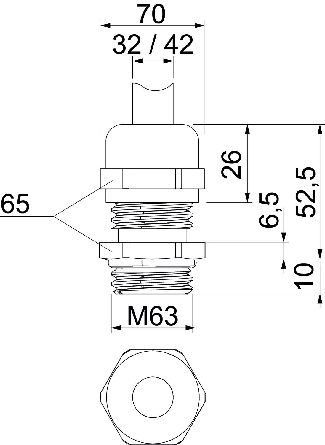 Aizsardzība pret lieci nē Aizsardzības veids IP68 Ar pretuzgriezni nē Atslēgas platums 65 Blīvējuma veids Blīvgredzens Blīvējuma virsma D maks. 42 mm Blīvējuma virsma D min. 32 mm CO2 pēdas nospiedums (GWP) no šūpuļa līdz vārtiem 0,8703 kg CO2e / 1 Gabals Daudzvietīgs blīvēšanas ieliktnis nē Iespēja atbrīvot no sprieguma jā Izmantošanas temperatūras diapazons maks. 100 °C Izmantošanas temperatūras diapazons min. -20 °C Izmērs L, maks. 52,5 mm Izmērs M63 Izmērs e 70 mm Izmērs L1 10 mm Izmērs L2 6,5 mm Izmērs L3 26 mm Izpildījums taisns Materiāls misiņa Nesatur halogēnus nē Nestabils griezes moments 13,5 Nm Plakanvada skrūvsavienojums nē sprādzienbīstamai zonai bez Stiegrots ar stikla šķiedru nē Triecienizturīgs nē Virsma Niķelēts Vītne M63 x 1,5 Vītnes garums 10 mm Vītnes veids metrisks - Visi tipi