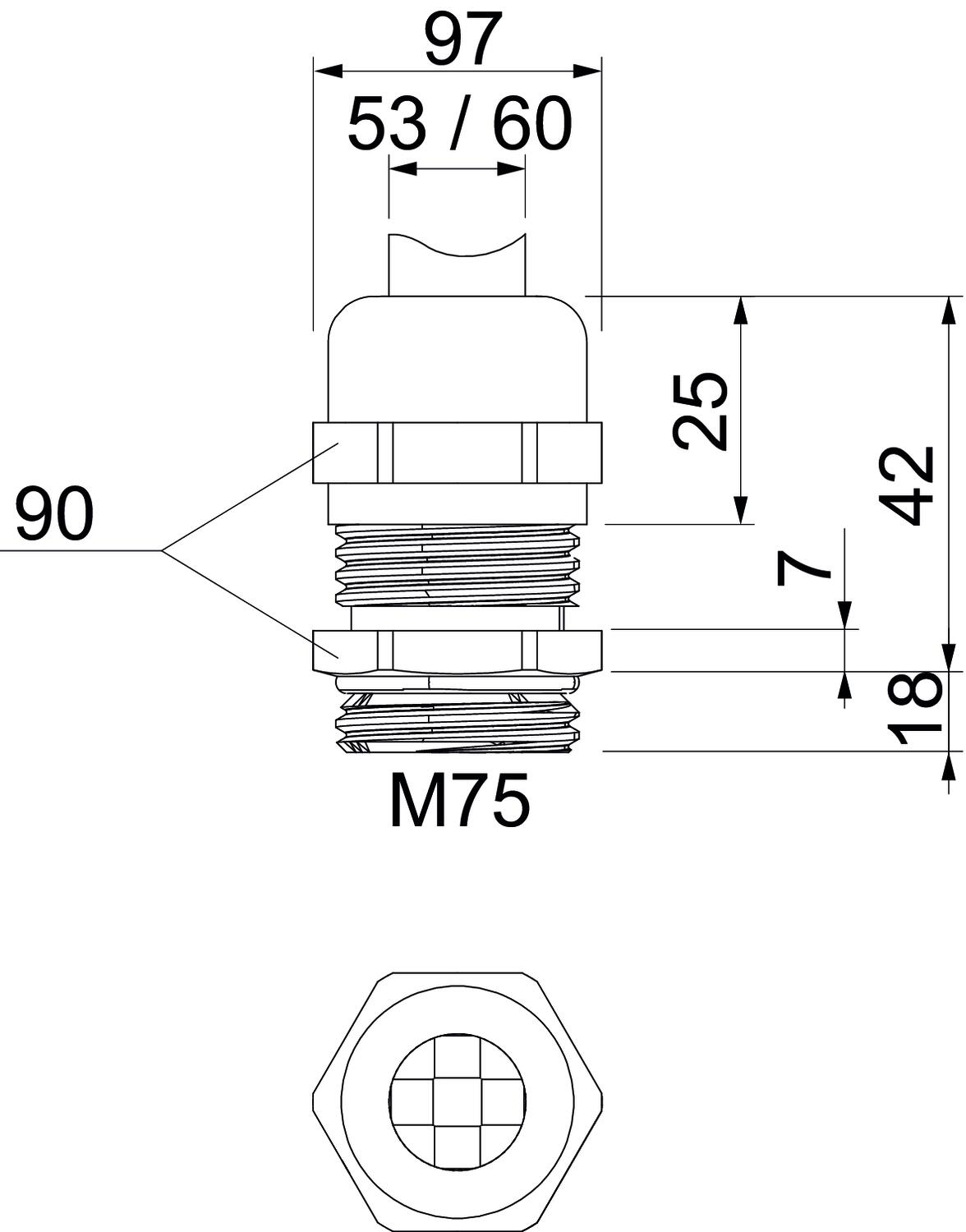 Aizsardzība pret lieci nē Aizsardzības veids IP68 aizsargāta pret eksploziju nē Ar pretuzgriezni nē Atslēgas platums 90 Blīvējuma veids Blīvgredzens Blīvējuma virsma D maks. 60 mm Blīvējuma virsma D min. 53 mm CO2 pēdas nospiedums (GWP) no šūpuļa līdz vārtiem 2,5159 kg CO2e / 1 Gabals Daudzvietīgs blīvēšanas ieliktnis nē Iespēja atbrīvot no sprieguma jā Izmantošanas temperatūras diapazons maks. 100 °C Izmantošanas temperatūras diapazons min. -20 °C Izmērs L, maks. 42 mm Izmērs M75 Izmērs e 97 mm Izmērs L1 18 mm Izmērs L2 7 mm Izmērs L3 25 mm Izpildījums taisns Materiāls misiņa Nesatur halogēnus nē Plakanvada skrūvsavienojums nē sprādzienbīstamai zonai bez Stiegrots ar stikla šķiedru nē Triecienizturīgs nē Virsma Niķelēts Vītne M75 x 1,5 Vītnes garums 18 mm Vītnes veids metrisks - Visi tipi