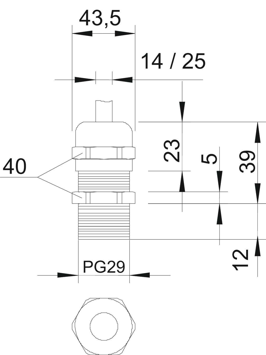 Aizsardzība pret lieci nē Aizsardzības veids IP68 aizsargāta pret eksploziju nē Ar pretuzgriezni nē Atslēgas platums 40 Blīvējuma veids Blīvgredzens Blīvējuma virsma D maks. 25 mm Blīvējuma virsma D min. 18 mm CO2 pēdas nospiedums (GWP) no šūpuļa līdz vārtiem 0,4261 kg CO2e / 1 Gabals Dalāms skrūvsavienojums nē Daudzvietīgs blīvēšanas ieliktnis nē Iespēja atbrīvot no sprieguma jā Izmantošanas temperatūras diapazons maks. 100 °C Izmantošanas temperatūras diapazons min. -20 °C Izmērs L, maks. 39 mm Izmērs PG29 Izmērs e 43,5 mm Izmērs L1 12 mm Izmērs L2 5 mm Izmērs L3 23 mm Izpildījums taisns Materiāls misiņa Nesatur halogēnus nē Plakanvada skrūvsavienojums nē sprādzienbīstamai zonai bez sprādzienbīstamai zonai, gāze bez sprādzienbīstamai zonai, putekļi bez Stiegrots ar stikla šķiedru nē Triecienizturīgs nē Virsma Niķelēts Vītne Pg 29 Vītnes garums 12 mm Vītnes iekšējais izmērs 29 Vītnes veids PG - Visi tipi