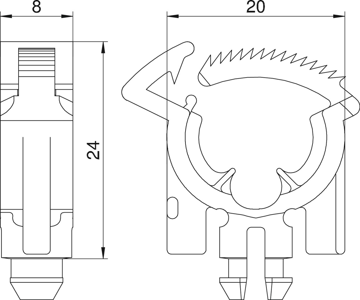 Produkta aprakstsKabeļu nostiepes fiksators izmantošanai universālo balstu nosegplāksnēs, ierīču kārbās, moduļu balstos un Telitank T4L un T8NL, lai atbilstoši standartiem atslogotu ievilktos vadus.