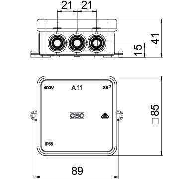 Uzspiežams vāks.Izmēri: 85 x 85 x 40 mm