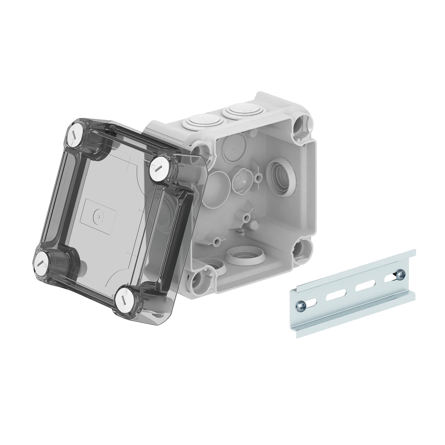 Produkta aprakstsKabeļu nozarkārba kabeļu un vadu savienošanai iekštelpās un aizsargātās ārtelpās. Kvadrātveida forma ar iespraužamu blīvi sānos un izsitamiem ievadiem grīdā. Piemērota montāžai pie sienas/griestiem un montāžai uz montāžas plāksnēm. Ar iekšējās stiprināšanas iespēju un montāžu ar stūra vākiem. Augsts, caurspīdīgs vāks ar ātro noslēgu, noplombējams. Ražots no materiāliem, kas nesatur halogēnogļūdeņražus un ir izturīgi pret UV starojumu.Ieskaitot U profila montāžas sliedi.