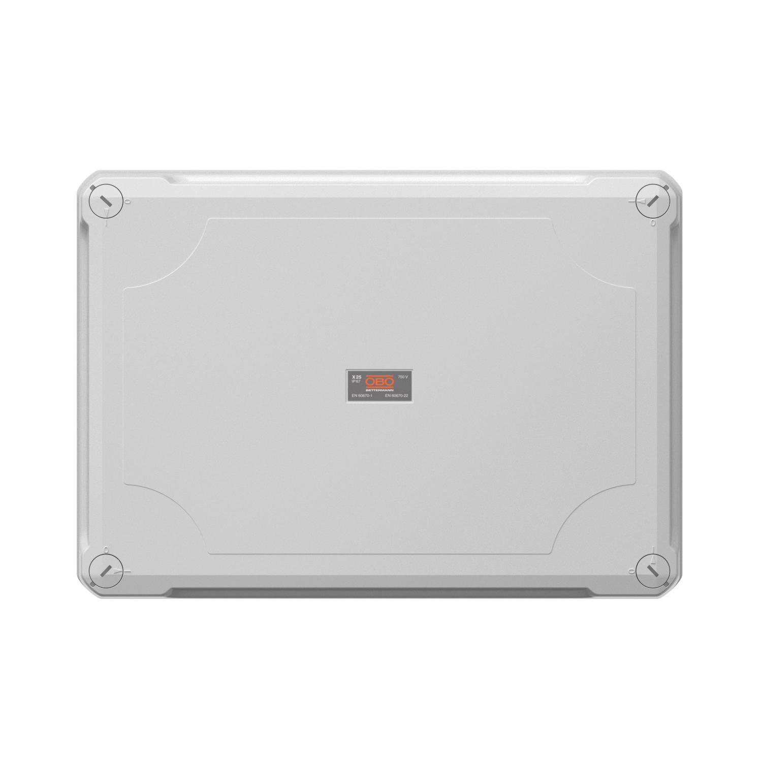 Produkta aprakstsKabeļu nozarkārba kabeļu un vadu savienošanai iekštelpās un ārtelpās. Taisnstūra forma ar izsitamiem ievadiem. Piemērota sienas/griestu montāžai ar iespēju nostiprināt ārpusē, iekšpusē vai montēt ar stūra vākiem. Īpaši triecienizturīgs ar IK09. Vāks ar ātro noslēgu, noplombējams. Ražots no materiāliem, kas nesatur halogēnogļūdeņražus un ir izturīgi pret UV starojumu.
