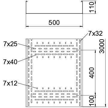 Produkta aprakstsSmagas konstrukcijas kabeļu reņu sistēma BKRS, kas iztur cilvēka svaru, ar perforētu pamatni, ar malas augstumu 110 mm.
