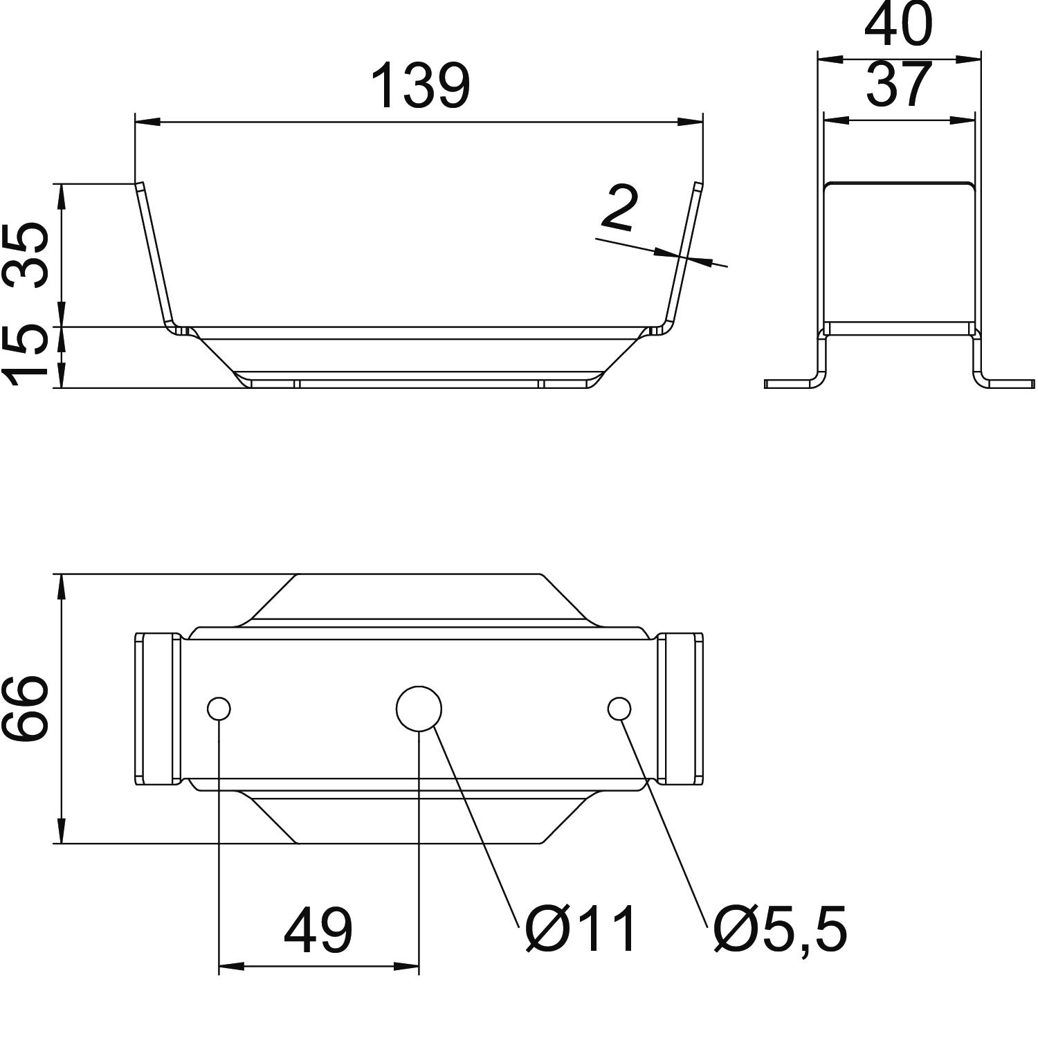 Augstums 50 mm Funkciju nodrošināšana nē Garums 66 mm Izmērs 140x66x50 Izpildījums Iekaramā skava (C skava) Krāsa cinks Materiāls Tērauds Piemērots kabeļu renei jā Piemērots kabeļu trepēm jā Piemērots režģveida renei jā Platums 140 mm Regulējams nē Reņu stiprinājums Sprostizcilnis Virsma cinkots - Visi tipi