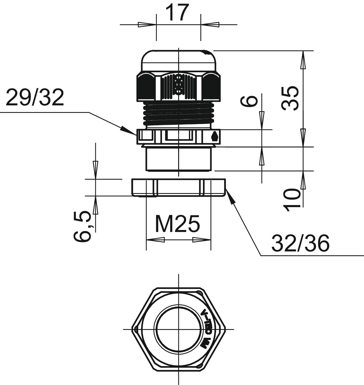 Aizsardzība pret lieci nē Aizsardzības veids IP68 Ar pretuzgriezni jā Atslēgas platums 29 Atslēgas platums 1 29 mm Atslēgas platums 2 32 mm Blīvējuma virsma D maks. 17 mm Blīvējuma virsma D min. 9 mm CO2 pēdas nospiedums (GWP) no šūpuļa līdz vārtiem 0,0783 kg CO2e / 1 Gabals Dalāms skrūvsavienojums nē Daudzvietīgs blīvēšanas ieliktnis nē Iespēja atbrīvot no sprieguma jā Izmantošanas temperatūras diapazons maks. 65 °C Izmantošanas temperatūras diapazons min. -20 °C Izmērs L, maks. 35 mm Izmērs L, min. 26 mm Izmērs M25 Izmērs e 32 mm Izmērs E1 (mm) 32 mm Izmērs E2 36 mm Izmērs G M25 x 1,5 mm Izmērs L1 10 mm Izmērs L2 6 mm Izmērs L3 6,5 mm Krāsa pasteļoranžs; RAL 2003 Materiāls Poliamīds Nesatur halogēnus jā Nestabils griezes moments 5 Nm Plakanvada skrūvsavienojums nē sprādzienbīstamai zonai bez sprādzienbīstamai zonai, gāze bez sprādzienbīstamai zonai, putekļi bez Stiegrots ar stikla šķiedru nē Triecienizturīgs nē ugunsizturīgs atb. VDE 0471/DIN 695, daļa 2-1, pārbaudes temperatūra 650°C Vītne M25 x 1,5 Vītnes garums 10 mm Vītnes kāpe 1,5 mm Vītnes veids metrisks - Visi tipi