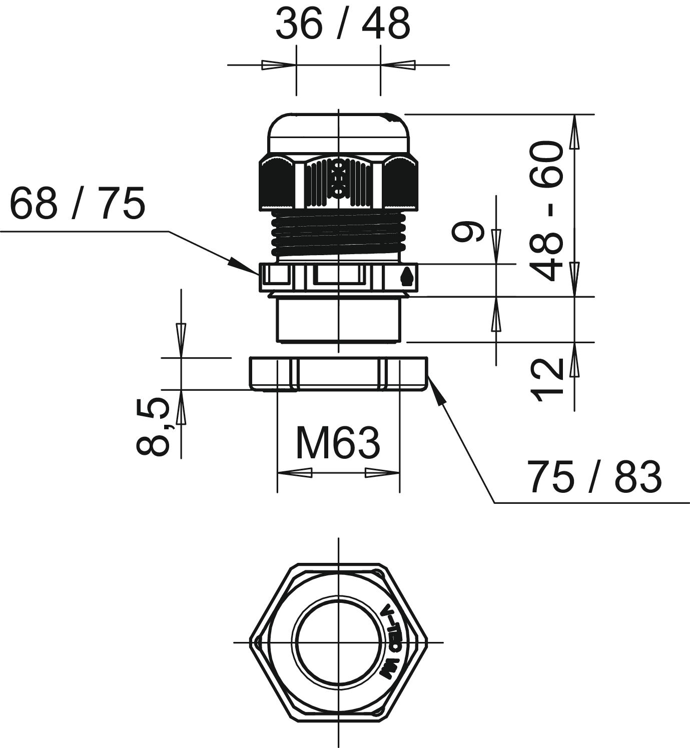 Aizsardzība pret lieci nē Aizsardzības veids IP68 aizsargāta pret eksploziju nē Ar pretuzgriezni nē Atslēgas platums 1 68 mm Atslēgas platums 2 75 mm Blīvējuma veids Blīvgredzens Blīvējuma virsma D maks. 48 mm Blīvējuma virsma D min. 36 mm CO2 pēdas nospiedums (GWP) no šūpuļa līdz vārtiem 0,4821 kg CO2e / 1 Gabals Dalāms skrūvsavienojums nē Daudzvietīgs blīvēšanas ieliktnis nē Iespēja atbrīvot no sprieguma jā Izmantošanas temperatūras diapazons maks. 65 °C Izmantošanas temperatūras diapazons min. -20 °C Izmērs L, maks. 60 mm Izmērs L, min. 48 mm Izmērs M63 Izmērs E1 (mm) 75 mm Izmērs E2 83 mm Izmērs L1 12 mm Izmērs L2 9 mm Izmērs L3 8,5 mm Izpildījums taisns Krāsa gaiši pelēks; RAL 7035 Materiāls Poliamīds Nesatur halogēnus jā Nestabils griezes moments 15 Nm Plakanvada skrūvsavienojums nē sprādzienbīstamai zonai bez sprādzienbīstamai zonai, gāze bez sprādzienbīstamai zonai, putekļi bez Stiegrots ar stikla šķiedru nē Triecienizturīgs nē ugunsizturīgs atb. VDE 0471/DIN 695, daļa 2-1, pārbaudes temperatūra 650°C Vītne M63 x 1,5 Vītnes garums 12 mm Vītnes iekšējais izmērs 63 Vītnes kāpe 1,5 mm Vītnes veids metrisks - Visi tipi