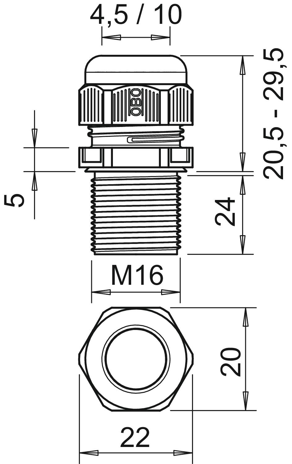 Produkta aprakstsKabeļu skrūvsavienojums ar metrisko savienojuma vītni ar kupoluzgriežņa konstrukciju, kabeļu nozarkārbām, korpusiem, sadalītāju skapjiem privātā un ražošanas jomā. Ar kabeļa ievades fiksatoru un integrētu blīvēšanas mēlīti, sertificētu atbilstoši DIN EN 62444. Aizsardzības klase IP68. Izmantojams no -20°C līdz +65°C.