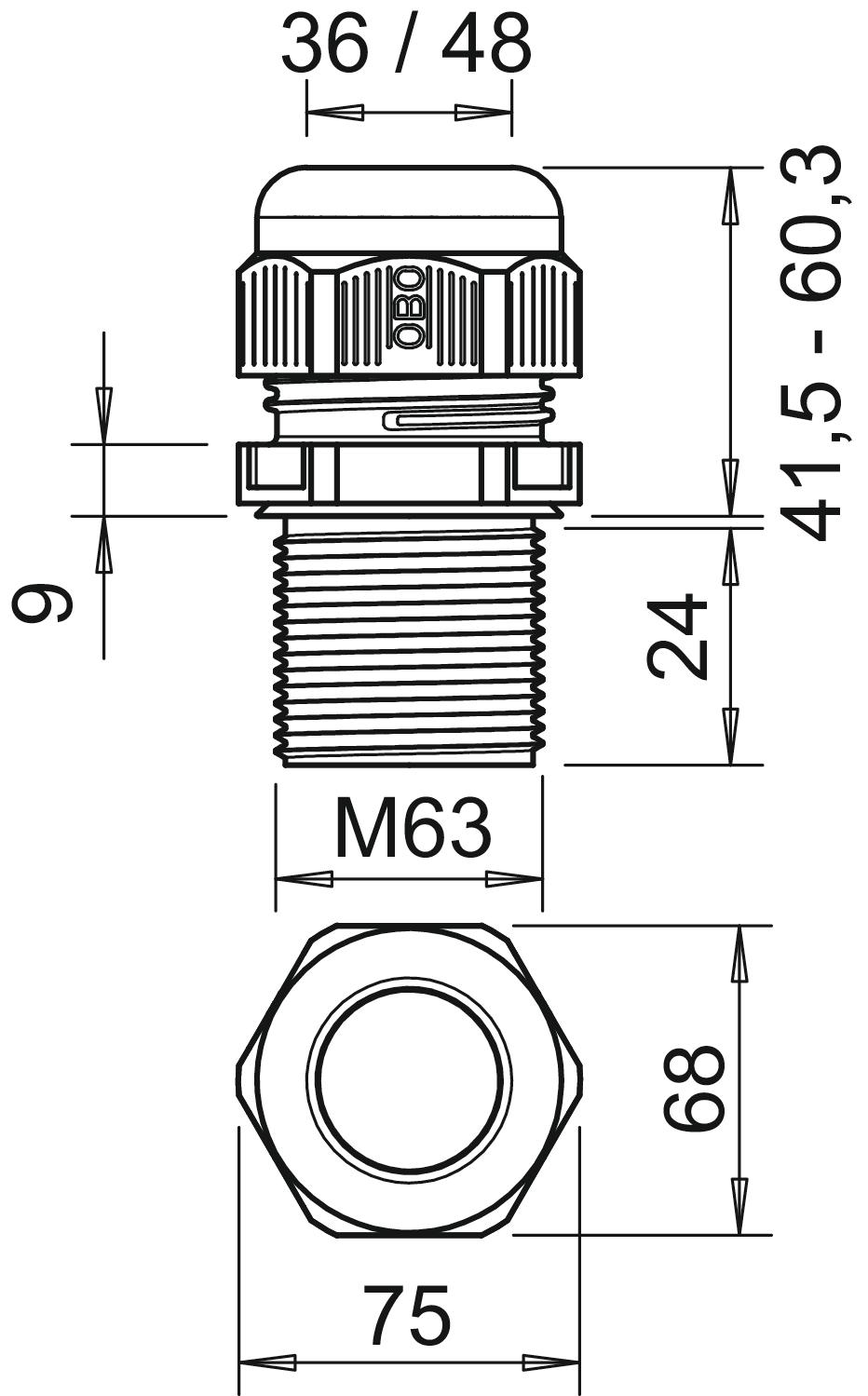 Aizsardzība pret lieci nē Aizsardzības veids IP68 aizsargāta pret eksploziju nē Ar pretuzgriezni nē Atslēgas platums 68 Blīvējuma veids Blīvgredzens Blīvējuma virsma D maks. 48 mm Blīvējuma virsma D min. 36 mm CO2 pēdas nospiedums (GWP) no šūpuļa līdz vārtiem 0,4558 kg CO2e / 1 Gabals Dalāms skrūvsavienojums nē Daudzvietīgs blīvēšanas ieliktnis nē Iespēja atbrīvot no sprieguma jā Izmantošanas temperatūras diapazons maks. 65 °C Izmantošanas temperatūras diapazons min. -20 °C Izmērs L, maks. 60,3 mm Izmērs L, min. 41,5 mm Izmērs M63 Izmērs e 75 mm Izmērs L1 24 mm Izmērs L2 9 mm Izpildījums taisns Krāsa melns Materiāls Poliamīds Nesatur halogēnus jā Nestabils griezes moments 12 Nm Plakanvada skrūvsavienojums nē Sešstūra stūra izmērs 75 mm sprādzienbīstamai zonai bez sprādzienbīstamai zonai, gāze bez sprādzienbīstamai zonai, putekļi bez Stiegrots ar stikla šķiedru nē Triecienizturīgs nē ugunsizturīgs atb. VDE 0471/DIN 695, daļa 2-1, pārbaudes temperatūra 650°C Vītne M63 x 1,5 Vītnes garums 24 mm Vītnes iekšējais izmērs 63 Vītnes kāpe 1,8 mm Vītnes veids metrisks - Visi tipi