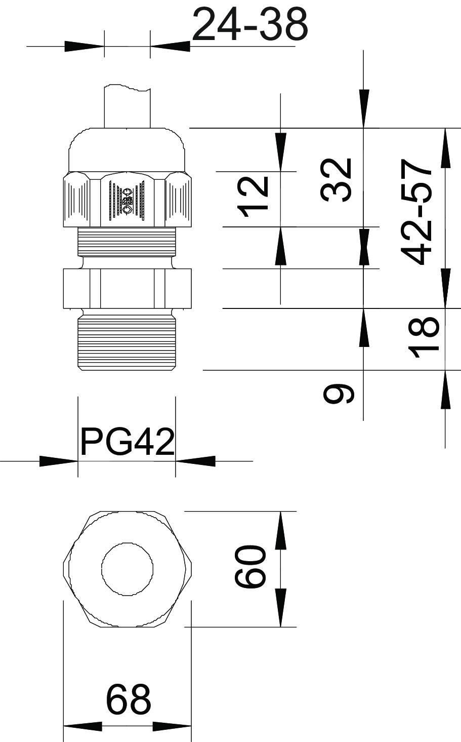 Aizsardzība pret lieci nē Aizsardzības veids IP68 aizsargāta pret eksploziju nē Ar pretuzgriezni nē Atslēgas platums 60 Blīvējuma veids Blīvgredzens Blīvējuma virsma D maks. 38 mm Blīvējuma virsma D min. 24 mm CO2 pēdas nospiedums (GWP) no šūpuļa līdz vārtiem 0,4733 kg CO2e / 1 Gabals Dalāms skrūvsavienojums nē Daudzvietīgs blīvēšanas ieliktnis nē Iespēja atbrīvot no sprieguma jā Izmantošanas temperatūras diapazons maks. 65 °C Izmantošanas temperatūras diapazons min. -20 °C Izmērs L, maks. 57 mm Izmērs L, min. 42 mm Izmērs PG42 Izmērs e 68 mm Izmērs L1 18 mm Izmērs L2 9 mm Izmērs L3 32,5 mm Izpildījums taisns Krāsa gaiši pelēks; RAL 7035 Materiāls Poliamīds Nesatur halogēnus jā Nestabils griezes moments 5 Nm Plakanvada skrūvsavienojums nē sprādzienbīstamai zonai bez sprādzienbīstamai zonai, gāze bez sprādzienbīstamai zonai, putekļi bez Stiegrots ar stikla šķiedru nē Triecienizturīgs nē Vītne Pg 42 Vītnes garums 18 mm Vītnes iekšējais izmērs 42 Vītnes kāpe 1,5 mm Vītnes veids PG - Visi tipi