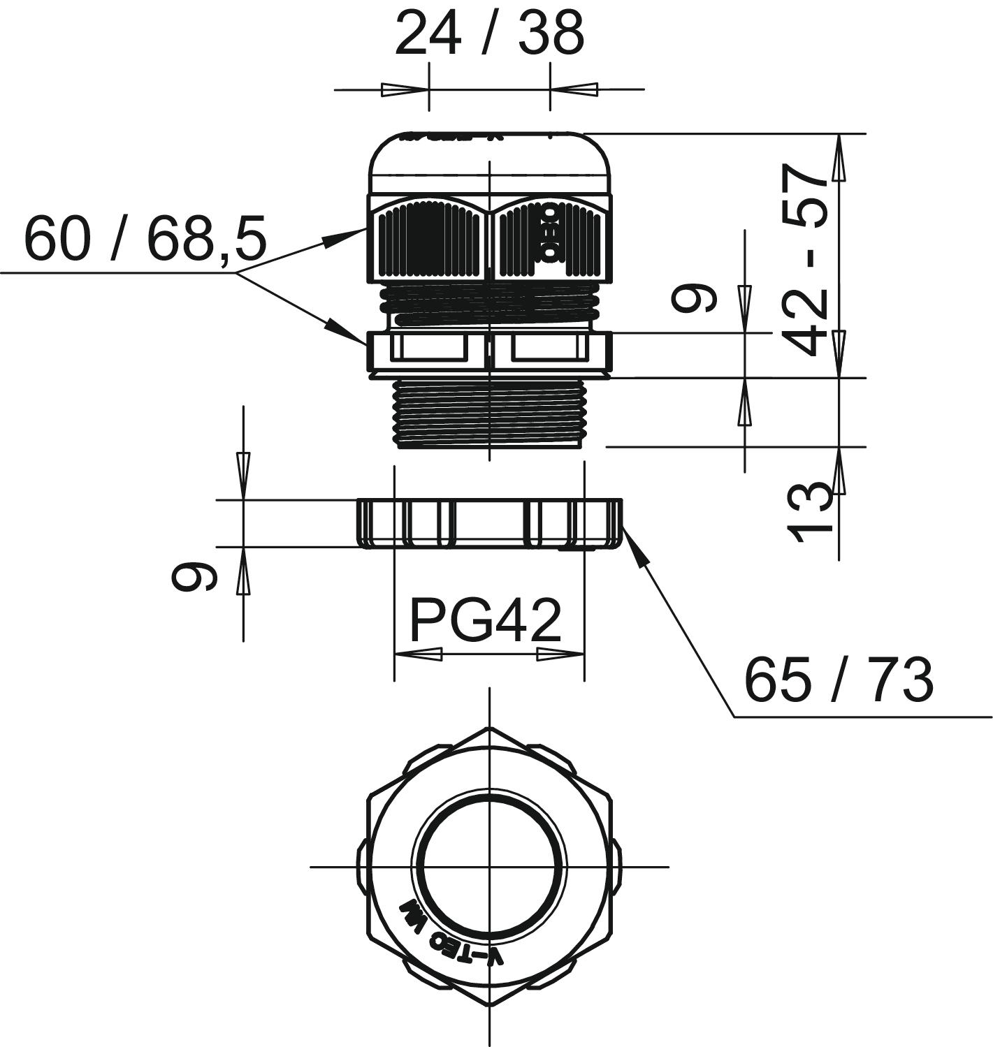 Aizsardzība pret lieci nē Aizsardzības veids IP68 aizsargāta pret eksploziju nē Ar pretuzgriezni jā Atslēgas platums 1 60 mm Atslēgas platums 2 65 mm Blīvējuma veids Blīvgredzens Blīvējuma virsma D maks. 38 mm Blīvējuma virsma D min. 24 mm CO2 pēdas nospiedums (GWP) no šūpuļa līdz vārtiem 0,4985 kg CO2e / 1 Gabals Dalāms skrūvsavienojums nē Daudzvietīgs blīvēšanas ieliktnis nē Iespēja atbrīvot no sprieguma jā Izmantošanas temperatūras diapazons maks. 65 °C Izmantošanas temperatūras diapazons min. -20 °C Izmērs L, maks. 57 mm Izmērs L, min. 42 mm Izmērs PG42 Izmērs E1 (mm) 68,5 mm Izmērs E2 73 mm Izmērs L1 13 mm Izmērs L2 9 mm Izmērs L3 6 mm Izpildījums taisns Krāsa gaiši pelēks; RAL 7035 Materiāls Poliamīds Nesatur halogēnus jā Plakanvada skrūvsavienojums nē Sešstūra stūra izmērs 68,5 mm sprādzienbīstamai zonai bez sprādzienbīstamai zonai, gāze bez sprādzienbīstamai zonai, putekļi bez Stiegrots ar stikla šķiedru nē Triecienizturīgs nē Vītne Pg 42 Vītnes garums 13 mm Vītnes iekšējais izmērs 42 Vītnes kāpe 1,5 mm Vītnes veids PG - Visi tipi