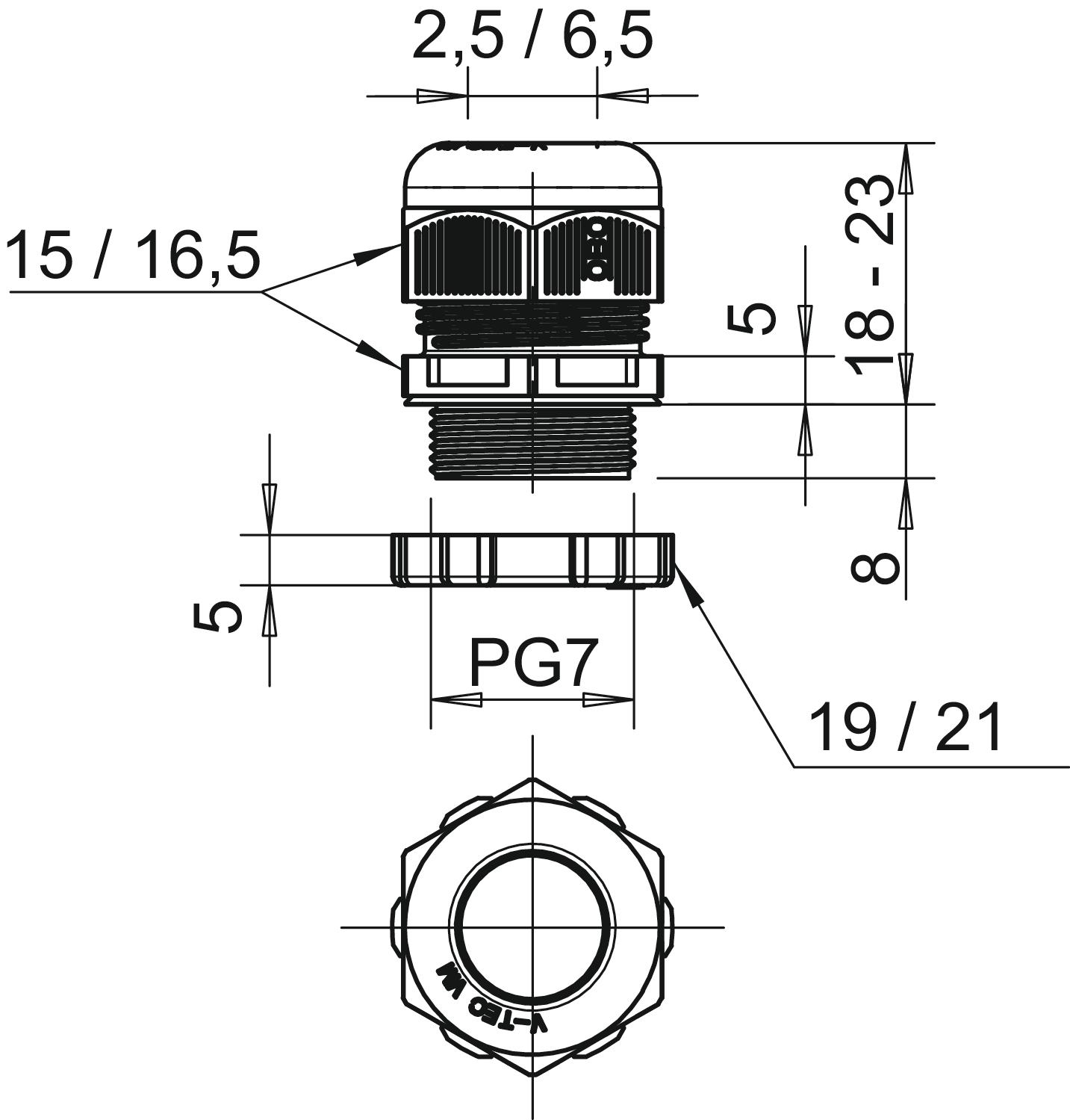 Aizsardzība pret lieci nē Aizsardzības veids IP68 aizsargāta pret eksploziju nē Ar pretuzgriezni jā Atslēgas platums 1 15 mm Atslēgas platums 2 19 mm Blīvējuma veids Blīvgredzens Blīvējuma virsma D maks. 6,5 mm Blīvējuma virsma D min. 2,5 mm CO2 pēdas nospiedums (GWP) no šūpuļa līdz vārtiem 0,03 kg CO2e / 1 Gabals Dalāms skrūvsavienojums nē Daudzvietīgs blīvēšanas ieliktnis nē Iespēja atbrīvot no sprieguma jā Izmantošanas temperatūras diapazons maks. 65 °C Izmantošanas temperatūras diapazons min. -20 °C Izmērs L, maks. 23 mm Izmērs L, min. 18 mm Izmērs PG7 Izmērs E1 (mm) 16,5 mm Izmērs E2 21 mm Izmērs L1 8 mm Izmērs L2 5 mm Izmērs L3 5 mm Izpildījums taisns Krāsa gaiši pelēks; RAL 7035 Materiāls Poliamīds Nesatur halogēnus jā Plakanvada skrūvsavienojums nē Sešstūra stūra izmērs 16,5 mm sprādzienbīstamai zonai bez sprādzienbīstamai zonai, gāze bez sprādzienbīstamai zonai, putekļi bez Stiegrots ar stikla šķiedru nē Triecienizturīgs nē Vītne Pg 7 Vītnes garums 8 mm Vītnes iekšējais izmērs 7 Vītnes kāpe 1,5 mm Vītnes veids PG - Visi tipi