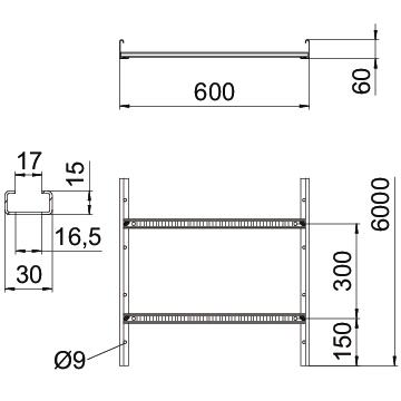 Produkta aprakstsKabeļu trepes ar 60 mm augstām malām, iemetinātiem un augšup vērstiem C30 profila spraišļiem. Ieliekta sānu mala pastiprinājumam, kas kalpo arī kā malu aizsargs. Nostiprināšana uz balsteņa notiek ar LKS 40 tipa skavām. Spraugas izmērs spraišļiem ir 16,5 mm, atbilstošais piekarapskavas tips ir 2056.