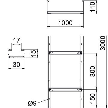 Produkta aprakstsKabeļu trepes ar 110 mm augstām malām, iemetinātiem un augšup vērstiem C30 profila spraišļiem. Ieliekta sānu mala pastiprinājumam, kas kalpo arī kā malu aizsargs. Nostiprināšana uz balsteņa notiek ar LKS 40 tipa skavām. Spraugas izmērs spraišļiem ir 16,5 mm, atbilstošais piekarapskavas tips ir 2056.