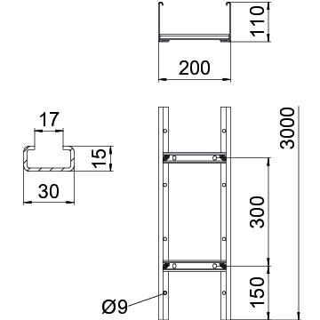 Produkta aprakstsKabeļu trepes ar 110 mm augstām malām, iemetinātiem un augšup vērstiem C30 profila spraišļiem. Ieliekta sānu mala pastiprinājumam, kas kalpo arī kā malu aizsargs. Nostiprināšana uz balsteņa notiek ar LKS 40 tipa skavām. Spraugas izmērs spraišļiem ir 16,5 mm, atbilstošais piekarapskavas tips ir 2056.