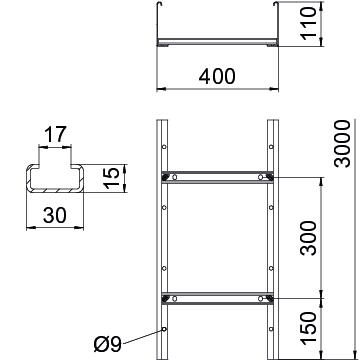 Produkta aprakstsKabeļu trepes ar 110 mm augstām malām, iemetinātiem un augšup vērstiem C30 profila spraišļiem. Ieliekta sānu mala pastiprinājumam, kas kalpo arī kā malu aizsargs. Nostiprināšana uz balsteņa notiek ar LKS 40 tipa skavām. Spraugas izmērs spraišļiem ir 16,5 mm, atbilstošais piekarapskavas tips ir 2056.